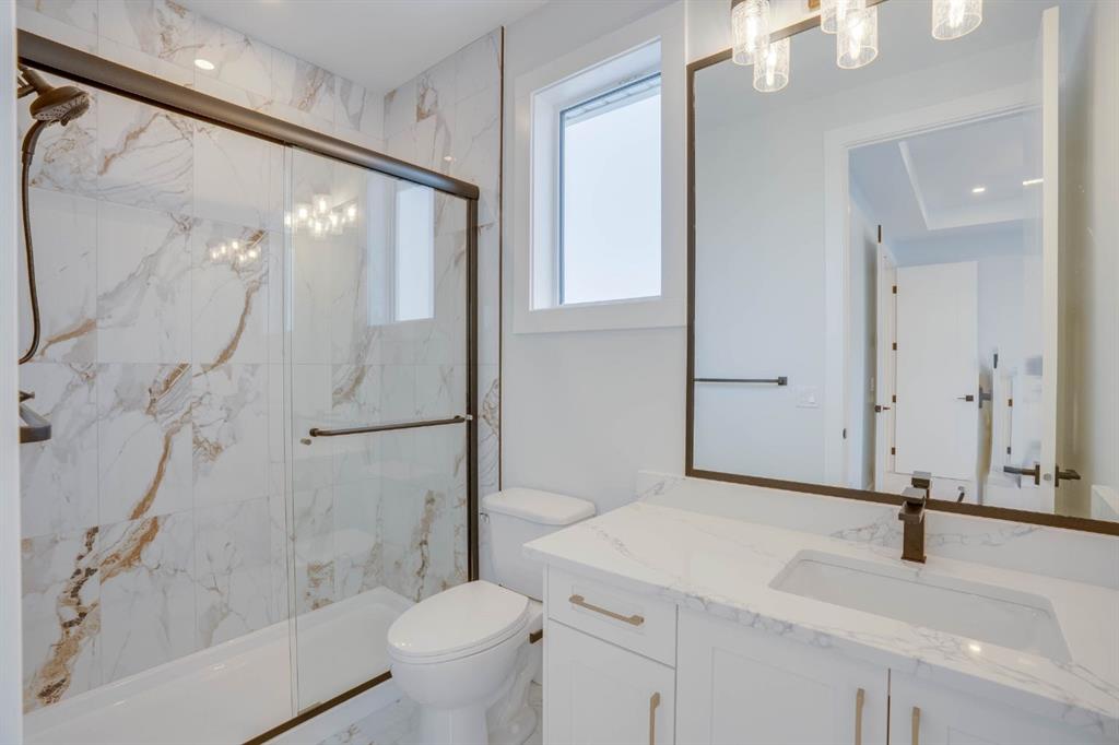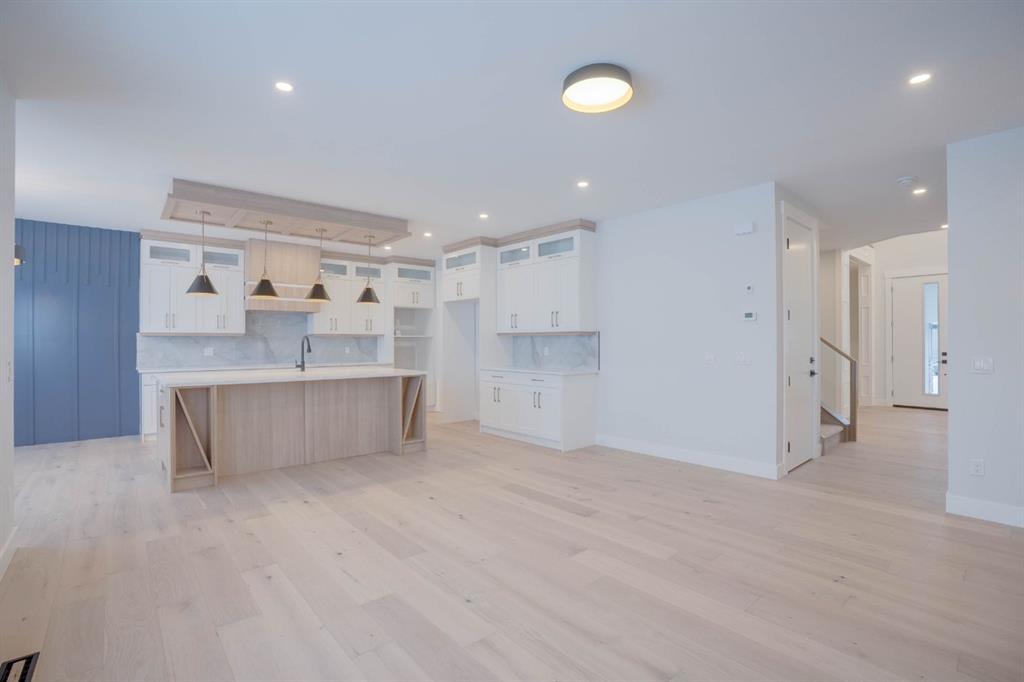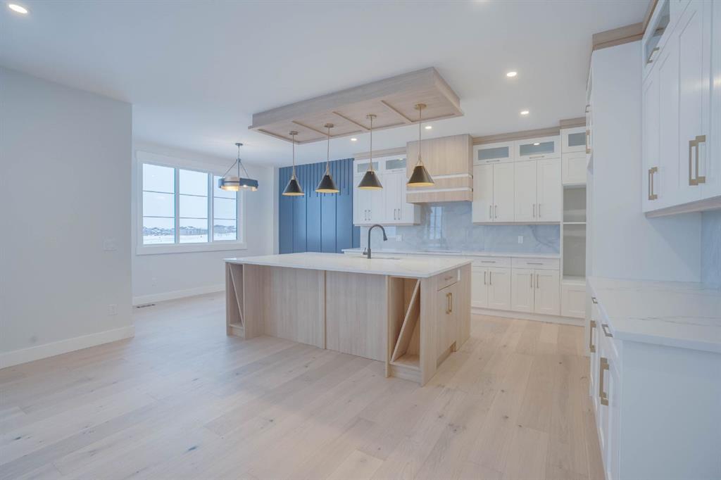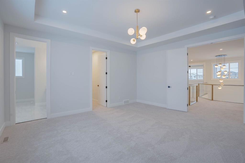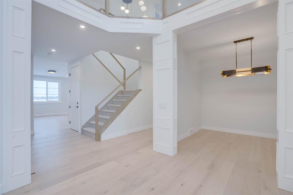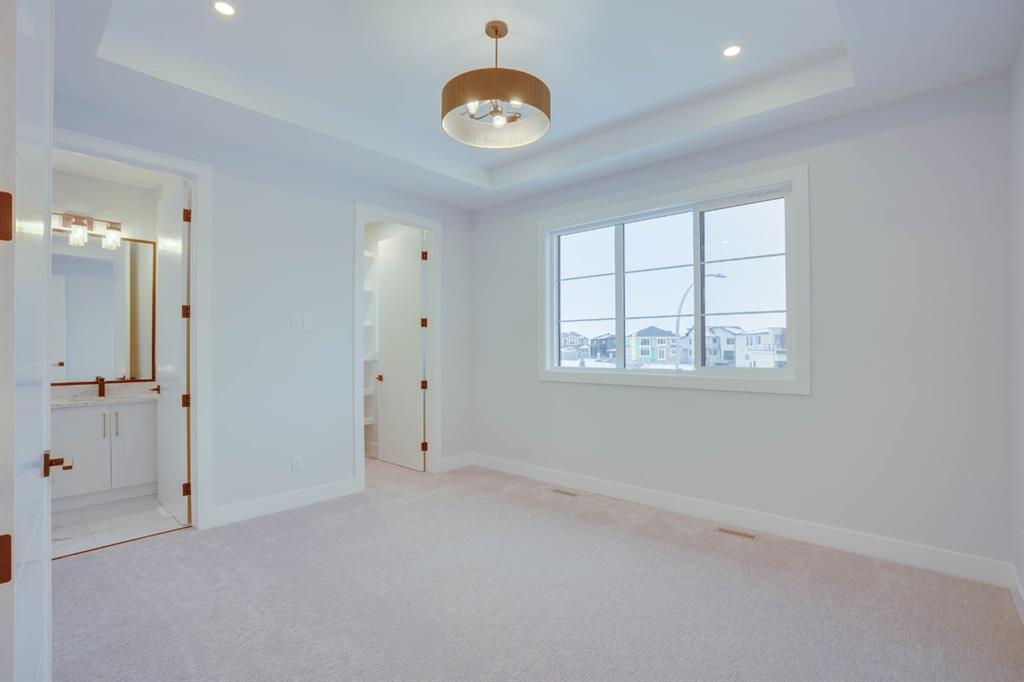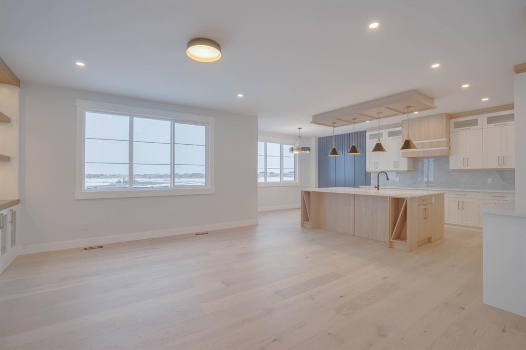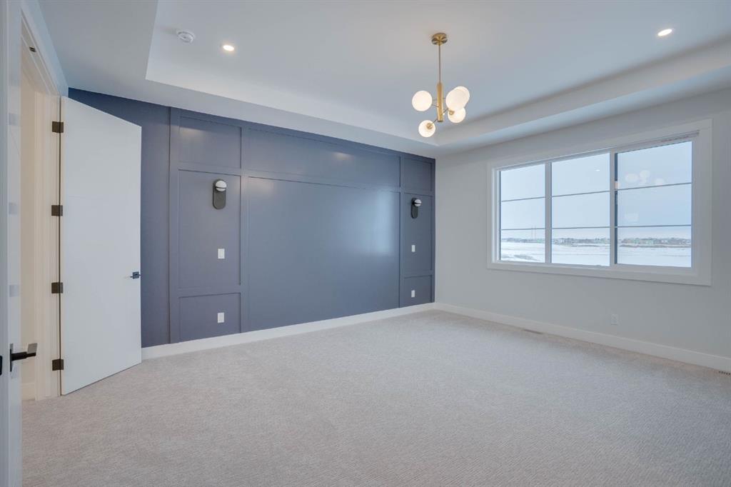 Welcome to this exceptional luxury home in the prestigious community of Waterford Estates, Chestermere. Step into a grand foyer that opens to an impressive living room with soaring open-to-below ceilings, setting the tone for the elegance and space this home offers. The main floor features a private office or den, a large bedroom with its own ensuite and closet, a spacious family room, a bright dining area, and a stunning gourmet kitchen with a massive island, complemented by a fully equipped spice kitchen and walk-in pantry. A generous mudroom and convenient two-piece bathroom complete this thoughtfully designed main level. Upstairs, the primary bedroom is a true retreat with a luxurious 5-piece ensuite and an expansive walk-in closet. The second bedroom also includes its own ensuite and walk-in closet, while two additional bedrooms share another full bathroom. A bonus room and upper-level laundry provide comfort and functionality for the entire family. Situated on a large pie-shaped lot with a huge backyard and a walkout basement, this home also features an attached three-car garage offering ample space for vehicles and storage. Ideally located near schools, parks, and shopping, this property combines elegance, convenience, and comfort in one of Chestermere’s most sought-after neighborhoods.