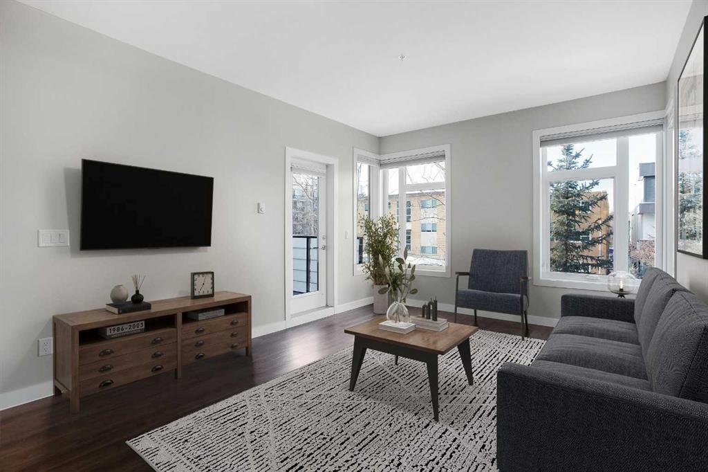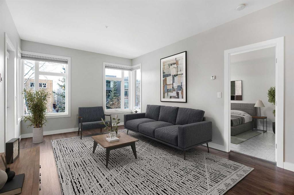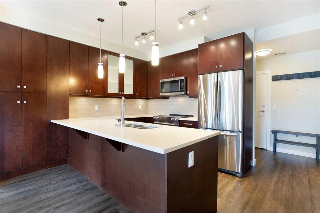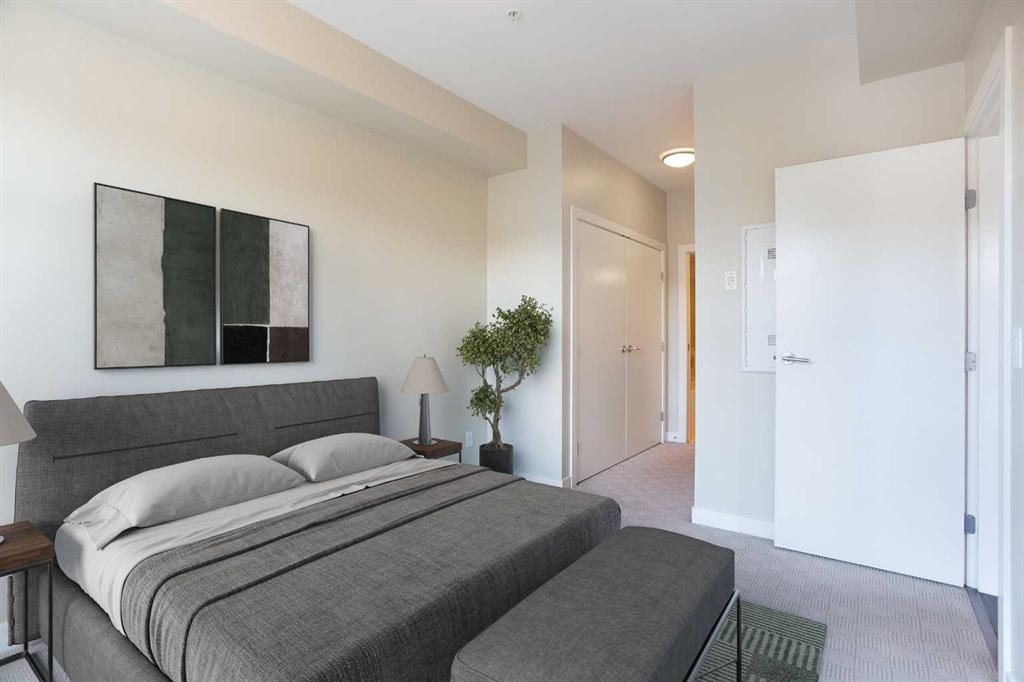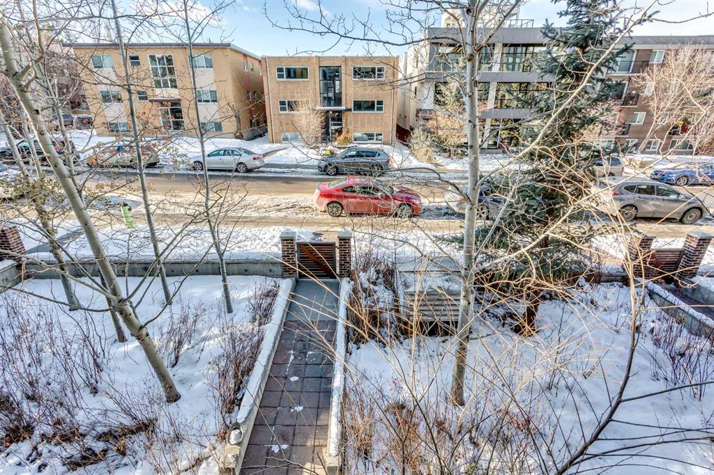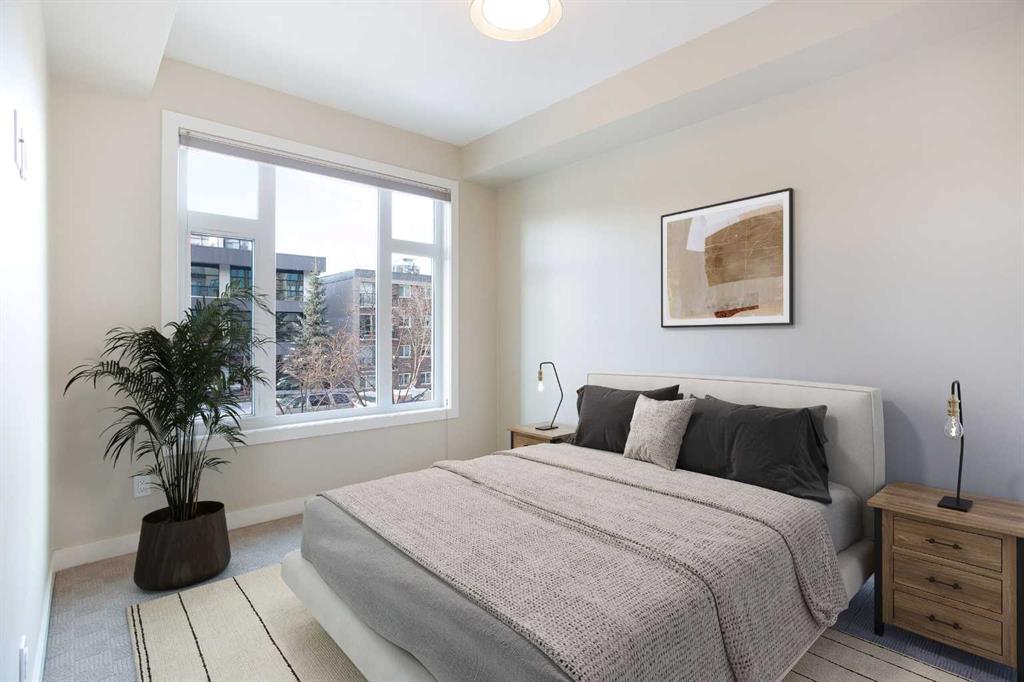 9FT CEILINGS | HEATED FLOORS | GREAT LOCATION | Welcome to Ten Mount Royal, a 47 unit building in the heart of Mount Royal with excellent access to shopping and amenities nearby. This spacious unit offers 2 bedrooms with their own ensuite bathrooms and large closets. Main entry is a separate well thought out space for guests to arrive before they access the main living area. The kitchen offers ample countertop and cupboard space, soft close drawers, under cabinet lighting, quartz countertops and stainless steel appliances, including a built in Bar fridge. Primary bedroom closet leads you into The west exposure provides ample natural light in the unit creating a bright and inviting living space. Step out onto the balcony complete with gas hookup, providing a nice sunny space for BBQing in the summer! Titled parking in the underground heated parking as well as separate locked storage room with a storage cage. This location is excellent for accessing downtown and all the restaurants and shops nearby and is very walkable for those who prefer to commute by foot. Book your viewing of this great unit today