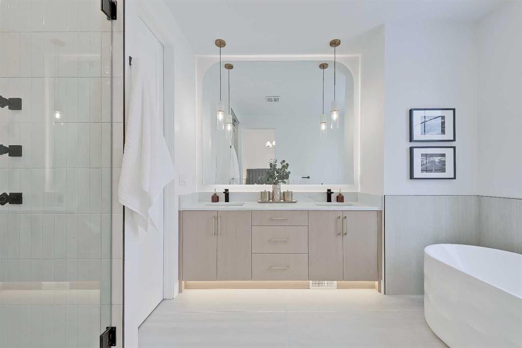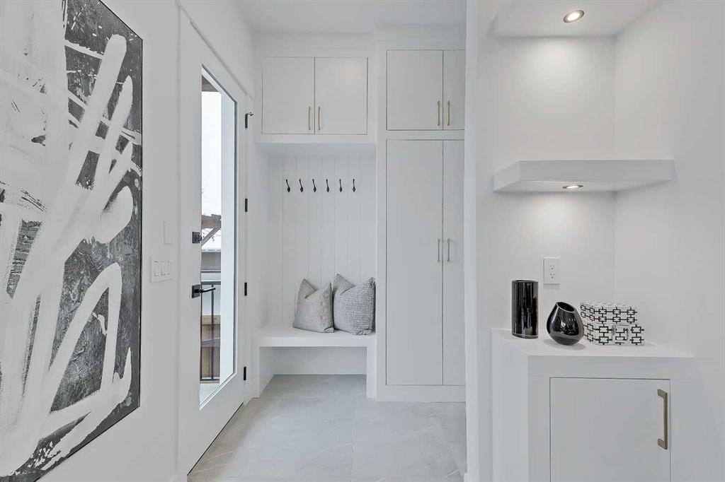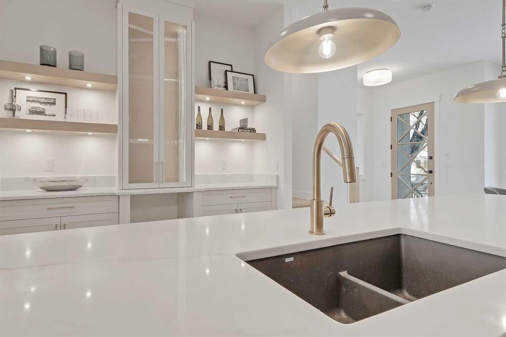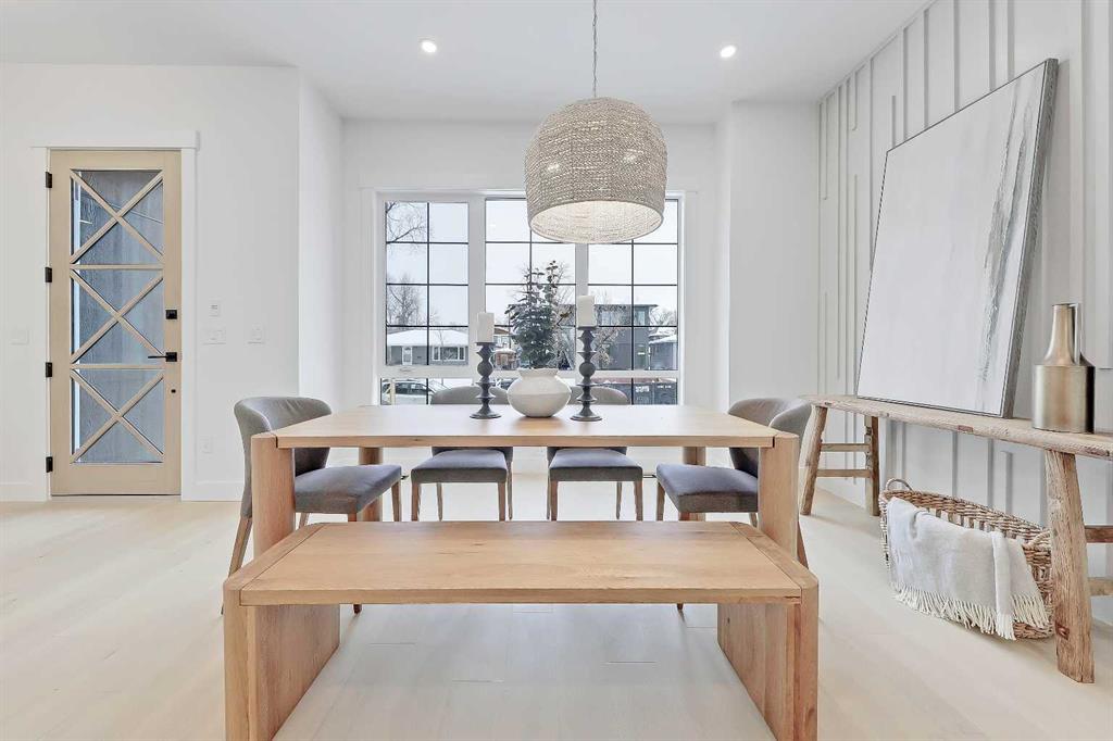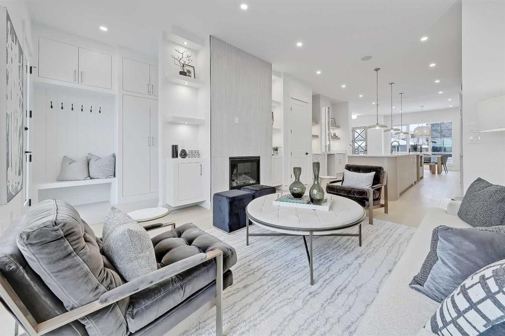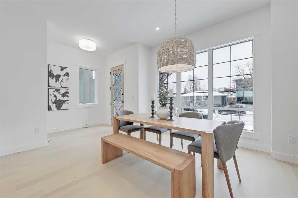 Clean lines, layered neutrals, and a magazine-ready kitchen come together in this modern PARKDALE INFILL home that feels calm the moment you step inside. The palette is soft and sophisticated, the hardware is warm, and every surface reads effortless. It’s designed for real life, with spaces that flow and finishes that stand out. You enter to a defined foyer with a closet for coats and sightlines across the wide plank engineered hardwood and high ceilings. Sightlines pull you forward to the heart of the home where the kitchen, dining, and living connect in one easy sweep. The kitchen is an entertainer’s dream: full-height cabinetry, a large quartz island with seating, warm fixtures, and integrated upgraded stainless steel appliance package & POT FILLER. The quartz features subtle golden veining for an elegant touch of luxury, and the slab backsplash maintains a sleek and easy-to-clean look. Across from the island, a generous dining area sits under designer lighting, making family dinners feel special even on a Tuesday. The living room is designed for a cozy and modern setup, oriented towards a fireplace feature with vertical wood clad tile that is sure to impress. Large windows draw in natural light and frame the backyard and vinyl deck. The rear mudroom with built-ins for shoes, backpacks, and sports gear makes daily life simple and organized, keeping the main level looking photo-ready. Upstairs is laid out for privacy and quiet retreats. The primary suite is a true haven, featuring a sky-high 11-ft ceiling, tall windows, a large walk-in closet, and a serene ensuite finished in warm stone tones. Enjoy a double vanity, walk-in shower w/steam, and elegant fixtures that match the home’s modern feel. Two additional bedrooms share a stylish full bath, and the laundry room is exactly where you want it. The lower level adds incredible flexibility w/ a LEGAL 2-BED SUITE (approved by the city), allowing you to use it as a mortgage helper or mother-in-law suite! Thoughtfully finished like the rest of the home, this space features a full kitchen with quartz counters and a stainless steel appliance package, a full 4-pc bathroom with a fully tiled tub/shower combo, and a dedicated laundry room. Location puts you in that sweet spot on Calgary’s northwest side with quick access to the BOW RIVER PATHWAY for runs and dog walks, and an easy connection to Edworthy Park. Groceries, coffee, and everyday errands are close at hand along 16 Ave and in Kensington, with more retail at Market Mall. Commuting is simple with nearby routes to downtown, and you’re minutes to Foothills and the Children’s Hospital, the University of Calgary, and the West Hillhurst Community Association for rinks, fitness, and programs. Well-regarded schools serve all ages, transit is convenient, and weekend life is dialed with parks, playgrounds, and local restaurants within a short drive. It’s understated luxury. Warm, modern finishes. Functional spaces that make daily life feel organized and elevated.