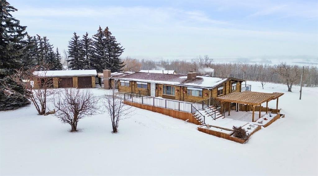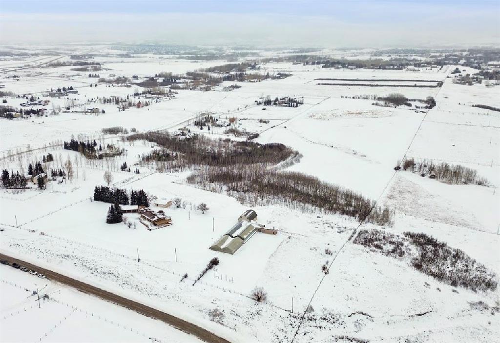 Breathtaking panoramic views of rolling countryside, sunrises, sunsets, the Rockies, and Calgary’s skyline define this exceptional gated & fenced almost 40 acre property just 5 mins to Calgary city limits south. Original family owned and built, 1st time ever listed. Formerly a licensed commercial greenhouse operation, the beautifully landscaped property features mature trees, concrete walkways, and endless potential. The large cedar log bungalow offers warmth and character with 2 wood burning fireplaces, expansive living spaces, flexible bedrooms/offices, developed basement areas, and seamless indoor-outdoor living with decks, pergolas, and patios. Equipped with hydronic and forced-air heating, A/C, Vacu-Flo, security system, radon mitigation, dual wells, softened and distilled water, and a meticulously maintained septic system. Extensive infrastructure includes a triple garage, heated workshop, barn with loft, and three fully serviced greenhouses, with parking. Easy highway access to Calgary and Okotoks, school bus route, agricultural income potential, and future subdivision or home-based business opportunities (with county approval). A rare, versatile acreage so close to Calgary offering lifestyle, income, and long-term value.