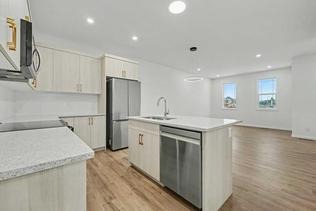 ** WATCH 3D TOUR** Welcome to this charming Brand new 2025 Built Semi Detached ( Half Duplex) nestled in the Carrington community, this house enjoys an ideal location surrounded by a wealth of amenities. As you enter the house, you're greeted by a huge living room with big size windows and an outstanding view. Step inside to discover a warm and inviting atmosphere. The open-concept layout seamlessly connects the living room to the kitchen, making it an ideal space for gatherings and daily living. The kitchen is a chef's delight, featuring fully upgraded appliances. ELECTRIC Stove, MICROWAVE hood fan, Dishwasher and upgraded fridge and with sleek countertops, ample cabinetry, pantry and a convenient Island becomes a joyous experience. Besides that, Main floor has a Bedroom, and there is a 2pcs washroom on the main floor. Venture upstairs to discover a haven of comfort and privacy. The second floor encompasses three spacious bedrooms, providing plenty of room for family members or guests to unwind. The primary bedroom boasts a 4pc ensuite bathroom and has a big walk in closet additionally, there's another full 4pc bathroom and a convenient laundry which comes with Washer n dryer. The unfinished basement with separate entrance and has 9-foot ceiling and two big size windows offers a great space awaiting your future development. With easy access to major roadways, commuting to downtown or exploring neighboring areas is convenient and effortless. In summary, this house offers a perfect blend of modern comfort, convenience, and affordability, making it an ideal place to call home in the vibrant community of Carrington.
