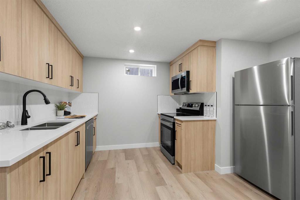 The illegal basement suite has a separate exterior entrance and is thoughtfully designed with an open kitchen and dining area flowing into the family room. Three spacious bedrooms are located downstairs, including one with walk-in storage, along with a full bathroom and laundry set up in the mechanical room.