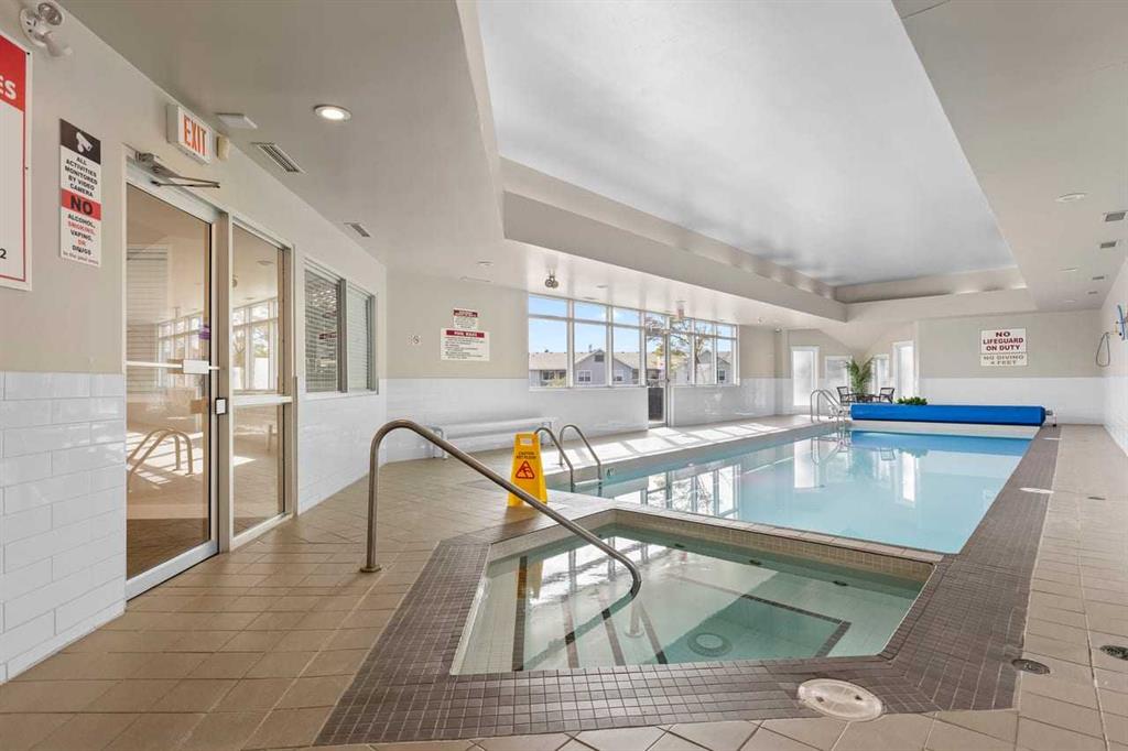 Best value! Renovated open concept, ground floor, corner unit, south facing balcony and over 850 ft.² of living space. This bright and inviting unit has been tastefully updated featuring a fully renovated kitchen 2024, a modern backsplash, and a brand new stove 2025 with a smart microwave hood fan 2025. The spacious living room is filled with natural light and complimented by a cozy gas fireplace. Step out to the covered balcony that's perfect for summer barbecues and gatherings. The large primary bedroom includes a walk through his and hers closet and a 3-piece en-suite. A second good size bedroom and a 4-piece bath complete the space. Enjoy the convenience of in unit laundry. This building was updated three years ago with new stucco and windows and offers exceptional amenities, including an indoor pool, hot tub, fitness center, recreation room, pool table and party room. Also a possibility for renting a storage unit for a small cost of $50/month. Just steps to nose Hill Park, shopping and schools. This property offers, comfort, convenience, and a community. Don't miss the opportunity to call this wonderful home yours!