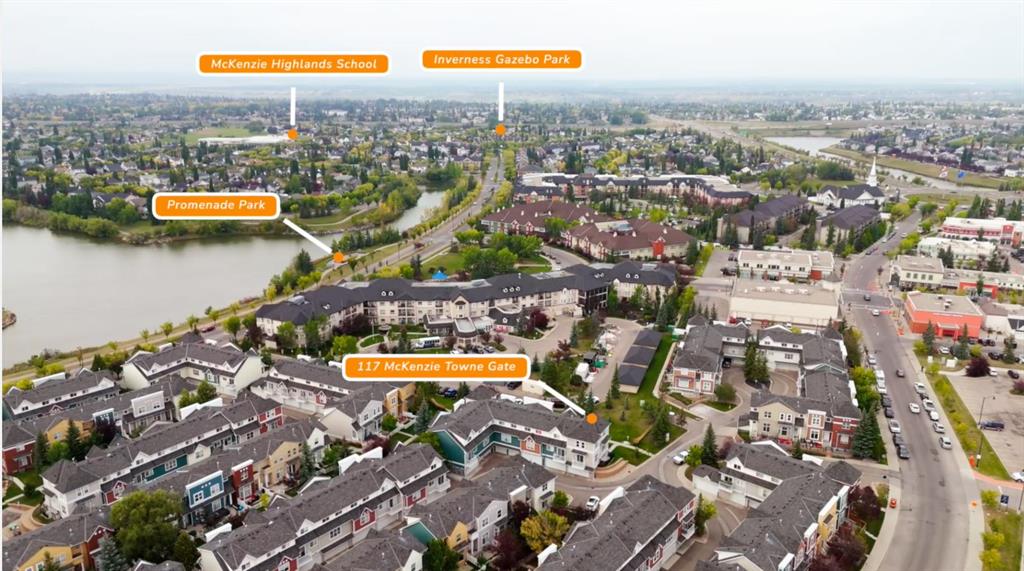 ARGUABLY THE BEST UNIT IN THE COMPLEX | FEEL OF A DETACHED HOME | WINDOWS ON THREE SIDES | DOUBLE ATTACHED GARAGE | WALK TO HIGH STREET SHOPPING | Welcome home to 117 McKenzie Towne Gate SE, located in the wonderful complex at “The Mosaic on High Street.” This unit is within walking distance of absolutely everything McKenzie Towne has to offer, truly an exceptional location. As you enter this end unit townhome, you’ll immediately notice this doesn’t feel like the average townhome, with large windows on three sides flooding the home with natural light throughout. The main level features a sizable kitchen with stainless steel appliances, a large pantry, and a spacious island accompanied by a large dining area, perfect for family gatherings or entertaining friends. The living room features soaring ceilings with even more windows, offering ample space to kick back and enjoy a Flames game or a cozy movie night this winter. As you head upstairs, you’ll find a conveniently located 2-piece bathroom positioned well out of the way from any eating or dining areas. The upper level features a large primary bedroom with windows on both sides and ample closet space. The second and third bedrooms would make a great guest room and home office, and are ideal in size for little ones, including a walk-in closet, while a sizable 4-piece bathroom completes this level. The lower level is an ideal storage space for bikes, outdoor gear, or anything else needing to be tucked away, and provides access to the fully insulated double attached garage, with no issue fitting two SUVs—something you don’t always find in a townhome. With quick access to major routes like Stoney Trail and Deerfoot, McKenzie Towne Square, nearby schools, Fish Creek Park, the Bow River, and countless amenities, this home delivers the perfect mix of comfort, convenience, and community. The local community centre offers programs for all ages and hosts regular events, with McKenzie Towne ranked among the top 26 master-planned communities in the world by the Urban Land Institute for its reflection of small-town living. This is a fantastic opportunity to own in one of the area’s most desirable complexes—please reach out today to book your private showing.