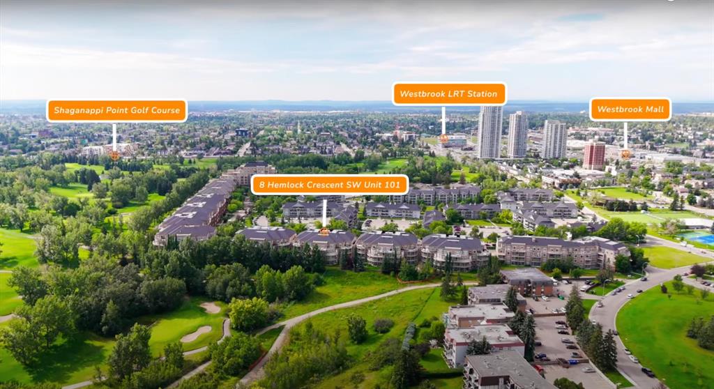 GROUND FLOOR WITH PRIVATE FRONT ACCESS | RENOVATED INTERIOR | TITLED UNDERGROUND PARKING | A/C | FLOODED WITH NATURAL LIGHT | LARGE SOUTH FACING WINDOWS | Welcome to Unit #101 at Copperwood in Spruce Cliff, ideally located just steps to Edworthy Park, the Bow River pathway system, and Shaganappi Point Golf Course. This upgraded 1 bed + 1 bath condo offers over 750 sqft of open concept living with fresh paint, high end engineered hardwood flooring, upgraded lighting, and a refreshed bathroom. The large kitchen is outfitted with stainless steel appliances, Corian countertops, garburator, a generous breakfast bar, and plenty of cabinetry for both storage and display. The living area centres around a cozy gas fireplace and flows seamlessly to the spacious covered patio, perfect for morning coffee or direct street access for dog owners or those who prefer to avoid elevators. The primary bedroom features a walk in closet with built in organizers and a 4 piece en suite. Additionally there is a built in desk or work area at the front that is perfect for those working from home. Additional features include in suite laundry with extra storage, built in central A/C, a titled heated underground parking stall, an assigned storage locker, and access to Copperwood’s outstanding amenities including a massive fitness facility, guest suite, party room, car wash bay, and secure bike storage. Not to be overlooked, the parking, storage, and elevator are all within a few metres of each other, a convenience often missed in other condo developments. Pet friendly and perfectly suited for professionals, travellers, or downsizers looking for a Spruce Cliff condo in a vibrant inner city location, walkable to Westbrook C Train Station, Westbrook Mall, the public library, groceries, parks, pathways, and just 5 minutes to downtown Calgary. Please reach out to book your private showing today.