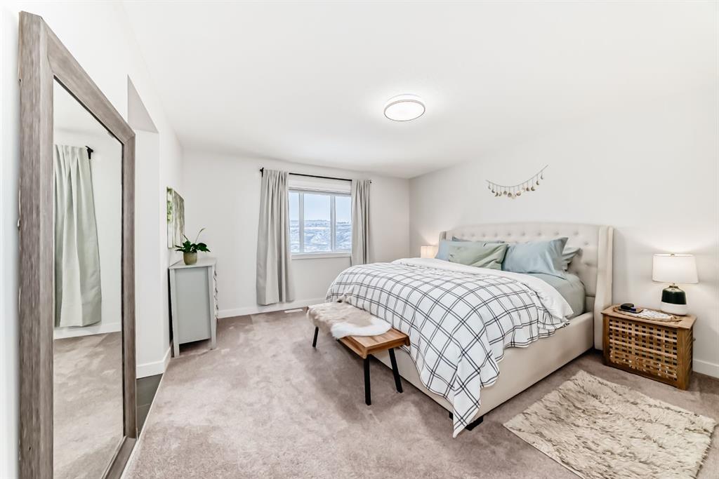 Welcome to 280 Precedence View, a nearly new, beautifully finished home featuring SPECTACULAR VIEWS, WALKOUT BASEMENT, HOT TUB, FENCED AND LANDSCAPED YARD, HOME OFFICE and BONUS ROOM. From the moment you step inside, the bright and open floor plan creates a warm, inviting atmosphere, enhanced by oversized windows and access to the deck that showcasing unobstructed views and front row seats to the Northern Lights. When you walk inside you are greeted with 2 front closets and a bench with storage, plenty of room for winter, fall and summer coats! The thoughtfully designed kitchen is ideal for entertaining, featuring a large quartz island, gas stove with SS hood fan and seamless flow into the living area, where the fireplace and expansive windows fill the space with natural light. The main floor also features a 1/2 bath and home office/main floor bedroom including a closet. Upstairs, the iron-spindled staircase leads to a spacious bonus room with vaulted ceiling, two well-sized bedrooms, a four-piece bathroom, and a stunning spacious primary retreat with beautiful views and complete with a luxurious five piece ensuite offering a soaker tub, large walk in tiled shower, quartz countertops, dual vanities and not one but two impressive walk in closets. Convenient upper level laundry with storage completes this floor. The partially finished walkout basement features a finished HOME GYM or 5th BEDROOM. The adjacent rec room has the electrical finished and ready for your personal touches! From the walkout basement you can enjoy your newer well maintained Beachcomber hot tub, privately located under the deck on its own concrete pad. The backyard oasis also features a fenced and landscaped yard with grass area, newly planted trees and shrubs, retaining wall and lower patio area. There are also steps at the side of the home for easy access to the back yard lined with Rundle rock. No expense was spared with over $50,000 in landscaping and upgrades! The home also features central air-conditioning for your comfort in the hot summer months, 220 wiring in the spacious double attached garage and an air purifier added onto the furnace. The home is ideally located just walking distance to kms of walking paths along the Bow River, off leash dog park, SLS Centre, pickle ball courts, playgrounds, Co-op Grocery store, gas bar and liquor store. Downtown Cochrane is just a short 5 min drive over the Jack Tenant bridge, Hwy 1 is a quick 10 min drive for easy access to Calgary, Kananaskis and the Banff National Park. Book a showing today!