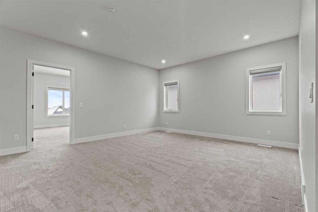 Upstairs, you’ll find a spacious bonus room, along with a luxurious primary retreat featuring a spa-inspired ensuite with a large shower and soaker tub. The primary suite conveniently connects to the upper-level laundry room. Three additional bedrooms and two additional full washrooms complete this level, including one with its own private ensuite. The fully developed walk-out basement is an entertainer’s dream, offering awet bar, gym, generous storage, and a large bedroom with a full bathroom—ideal for guests or extended family. Additional highlights include a triple heated garage with epoxy flooring, triple-pane windows, Gemstone exterior lighting, heating and cooling controls on each level, and 9-foot ceilings throughout the upper and lower levels. The home is fully landscaped with underground sprinklers, exposed aggregate concrete pad under the patio, and with a beautiful lighted pergola to enjoy under the summer and autumn nights. This is a rare opportunity to own a nearly new luxury home in one of the most sought-after communities in the Calgary area.