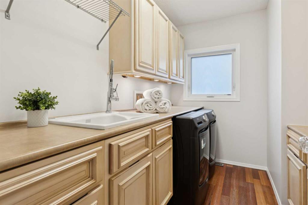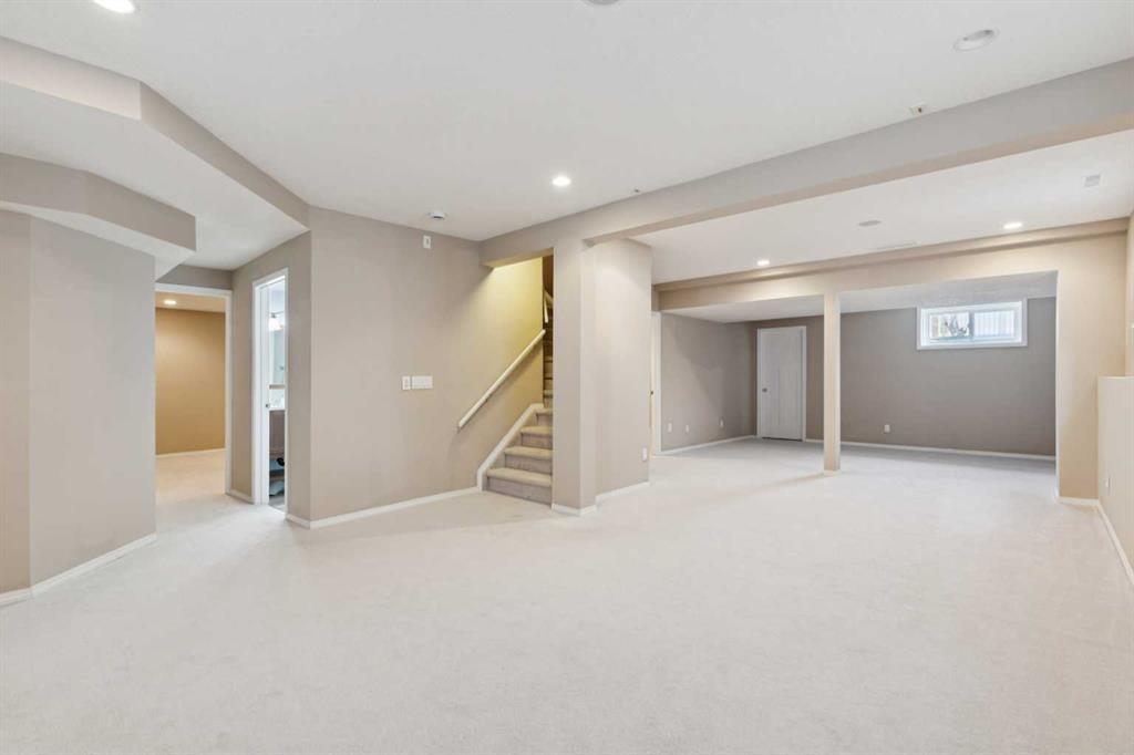 This beautiful, well-maintained home offers the space, layout, and features buyers are looking for, starting with a double attached garage, a great yard, and plenty of storage throughout. The inviting front entry opens to a generous living and dining area with high ceilings, hardwood floors, and multiple windows that flood the home with natural sunlight, including downtown views from the front living room and front bedrooms. The floor plan flows around the central staircase into a functional kitchen with granite countertops, ample cabinetry, a pantry, modern appliances, and a casual eating area with direct access to the backyard—perfect for summer meals outside. A second living space features a cozy gas fireplace and plenty of room for the whole family, followed by a half bath, a flexible bonus area, and a standout laundry room with cabinets, sink, and exceptional workspace. Upstairs, the expansive primary bedroom easily fits a king-size bed and includes an additional nook ideal for a nursery or reading area. Further benefits include the large walk-in closet, and a private ensuite with double vanity, soaker tub, and separate shower. As an extra bonus, this room also features a walk-out balcony overlooking your backyard. Three more spacious bedrooms with large windows and closets share a full 4-piece bathroom. The fully finished basement adds even more value with a wide-open recreation area, a full bathroom, and two additional rooms that can be set up to suit your needs. Additional highlights include hardwood flooring on the main and upper levels, A/C on the upper floor, two furnaces, two water heaters, and professionally replaced Poly-B plumbing for peace of mind.