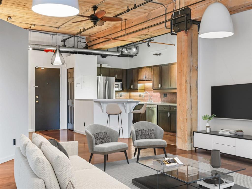 Exceptional live/work loft in the iconic Hudson Lofts—one of Calgary’s most sought-after warehouse conversions. This beautifully renovated unit seamlessly blends modern updates with timeless industrial character, offering a rare opportunity in the heart of the Beltline.