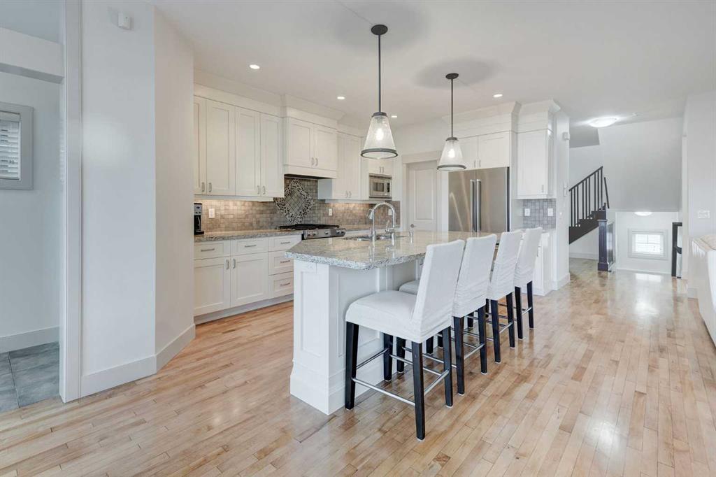 Step into this stunning two-storey home located in the inner city area of Shaganappi. Throughout the home, fresh paint and brand-new carpet elevate the overall look and feel, making it truly move-in ready. As you enter, you'll be greeted by vaulted ceilings and a spacious foyer that sets the tone for the rest of the home. The main level features beautiful hardwood floors and an open kitchen filled with light. This kitchen is a chef's delight, boasting a large island with granite countertops, breakfast bar seating, ample counter and storage space, a gas stove, stainless steel appliances, and a pantry. From the kitchen, you’ll find a bright, spacious living room accentuated by a cozy fireplace with built-in shelves and storage, large windows, and numerous pot lights, creating a warm and inviting atmosphere. The main floor also boasts a formal dining room, perfect for family gatherings, a mudroom leading to the back deck, and a 2 piece bathroom completes the main level. Upstairs, the large primary bedroom is a true retreat with vaulted ceilings, a walk-in closet with built-in organizers, and a spacious five-piece ensuite featuring a soaker jet tub, double vanity, stand-up shower, and generous counter and storage space. Three additional bright bedrooms provide ample space for family or guests, and all bedrooms are serviced by a convenient upper floor laundry room with storage. The finished basement is designed for entertainment and versatility, featuring a large wet bar with plenty of counter and cupboard space, a sink, and its own fridge and dishwasher. The basement also includes a family room with abundant space for various activities and a fifth and final bedroom with an ensuite bathroom, perfect for guests or a home office. This home also enjoys the benefit of 2 furnaces and 2 air conditioning units, ensuring ultimate control over the temperature. The exterior of the home is equally impressive, with a low-maintenance backyard that includes a large wood deck, a concrete patio, and a landscaped grass area surrounded by a garden, providing a private and serene outdoor space. The double detached heated garage with garage door controls opens to the back alley, ensuring convenience and security. Located in the desirable Shaganappi neighbourhood, this home offers an unbeatable location. Just steps from an LRT station and the Shaganappi golf course, it is also close to schools, parks, shopping options including a Walmart, and the vibrant 17th Avenue. The proximity to downtown Calgary and the Bow River, combined with easy access to the rest of the city via Bow Trail, makes this an ideal home for those seeking both convenience and luxury. Don't miss the opportunity to make this exceptional property your own. Don't miss the opportunity to make this freshly updated and beautifully maintained property your own. Book a showing today and experience the best of Calgary living.