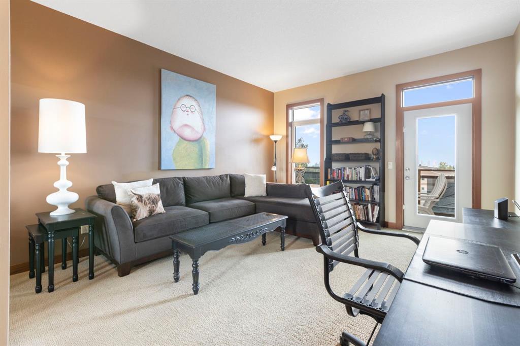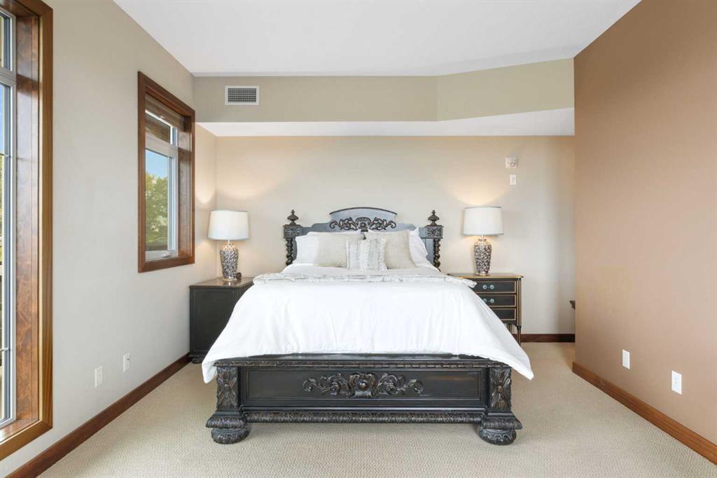 An exceptional opportunity to experience refined urban living in one of Calgary’s most thoughtfully designed residences. This elegant three bedroom, two full bathroom corner home offers breathtaking southwest city and mountain views, two private balconies, and two titled parking stalls in the heated underground parkade. Originally designed as the Havenworth show suite, this residence was meticulously crafted to showcase the very best the building has to offer. Premium upgrades, curated finishes, and a layout that balances beauty with everyday functionality set this home apart. Lovingly maintained by the original owners, pride of ownership reflects throughout. Soaring 9" ceilings, an open concept layout, and floor to ceiling windows create an immediate sense of space and light. Expansive sightlines frame the stunning views, while both the primary suite and adjacent second bedroom open directly onto spacious balconies, a rare feature offering seamless indoor outdoor living and peaceful retreats for morning coffees or evening sunsets.The chef inspired kitchen is both striking and functional, featuring exotic hardwood flooring, custom cabinetry crafted from Lyptus hardwood and African mahogany, high end Miele and Jenn Air appliances, granite countertops, generous prep space, and ample storage. The living and dining areas flow effortlessly together, anchored by a dramatic floor to ceiling fireplace that creates a warm and inviting atmosphere for entertaining or relaxing.