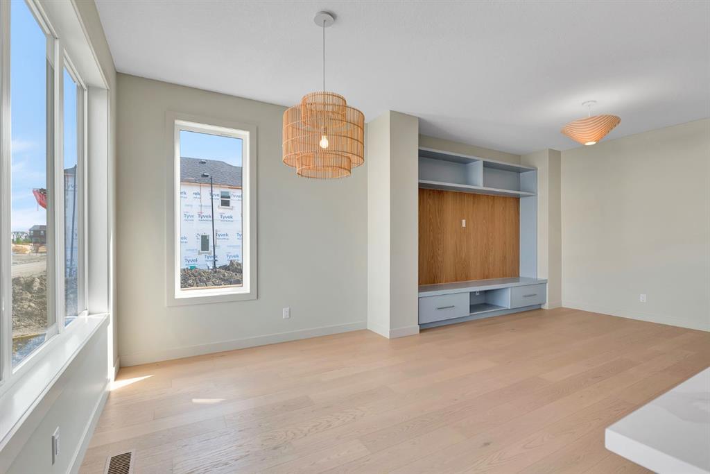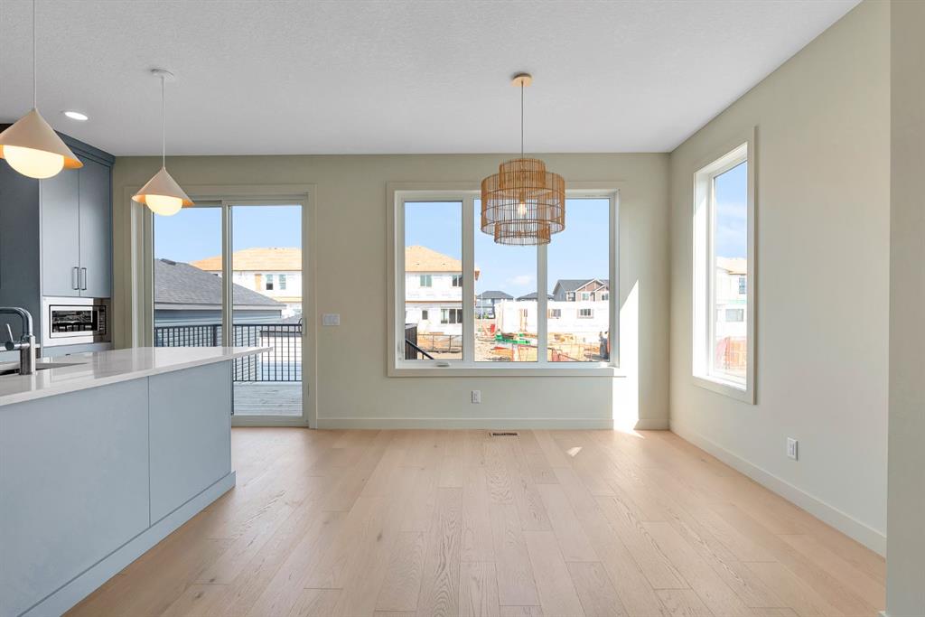 Welcome to this brand-new custom spec home by Kingsmith Builders, a renowned local developer celebrated for quality, craftsmanship, and timeless design. Forget the cookie cutter builds, this home is a one of a kind masterpiece where every detail has been meticulously planned and executed by highly skilled local trades. Step inside and experience over 1,675 sq. ft. of developed living space plus an additional 548 sq. ft. unfinished basement, designed as a blank canvas with strategically placed mechanical systems and large windows for a seamless future development. The main level is anchored by a gourmet kitchen featuring floor-to-ceiling custom cabinetry in a striking modern blue, premium white quartz countertops, stainless steel appliances, and a built-in microwave hutch for elegance and convenience. The open concept living and dining area is drenched in natural light, showcasing an engineered hardwood floor and a stunning custom wood accent wall with built-in shelving, perfect for your entertainment centre. A spacious foyer and well appointed half bath complete this level. Upstairs, you’ll find three generously sized bedrooms, each filled with natural light. The primary retreat is exceptional, offering a massive walk-in closet with custom built-in cabinetry, and a private 3-piece ensuite highlighted by show stopping tile work. Two additional bedrooms, a full bath, and a thoughtfully placed laundry room provide convenience for everyday living.