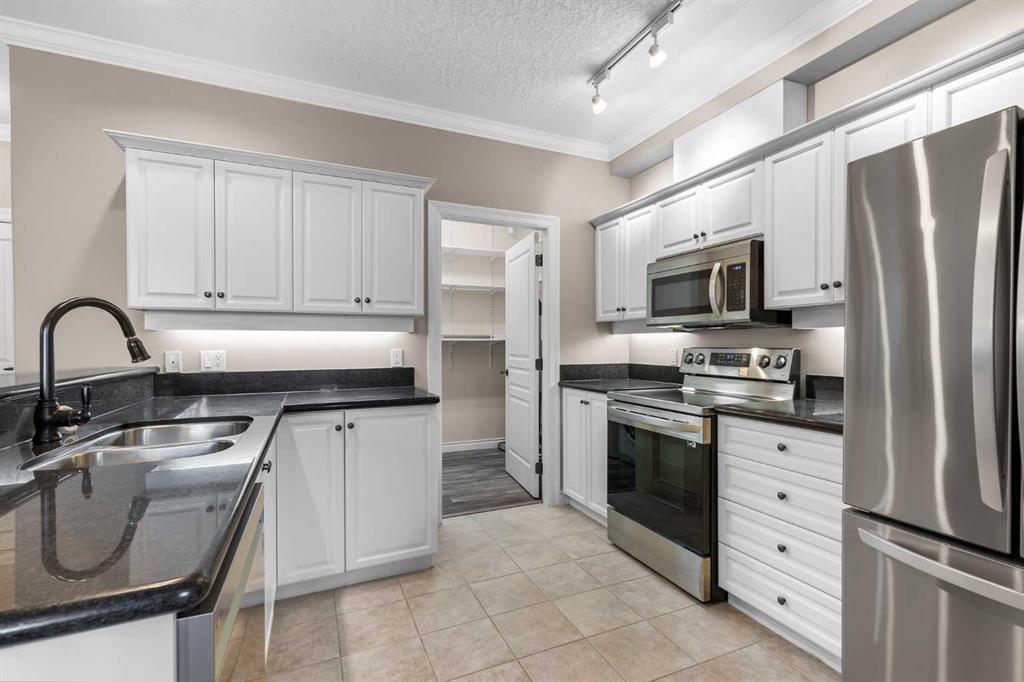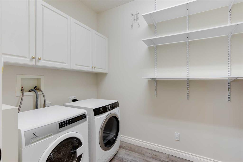 The Master bedroom feels like a retreat, complete with a 5-piece ensuite, corner tub, separate shower, and a generous walk-in closet. In-suite laundry and a pantry/storage room are thoughtfully tucked beside the kitchen, keeping everything practical and within reach.