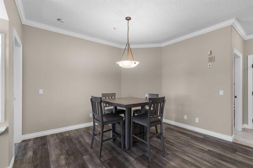 Morning light fills this east-facing condo in River Grande Estates, the kind of light that makes the space feel calm and welcoming the moment you walk in. Freshly painted and finished with luxury vinyl plank flooring through the entrance, dining, and living room, the home feels clean, modern, and easy to live in.