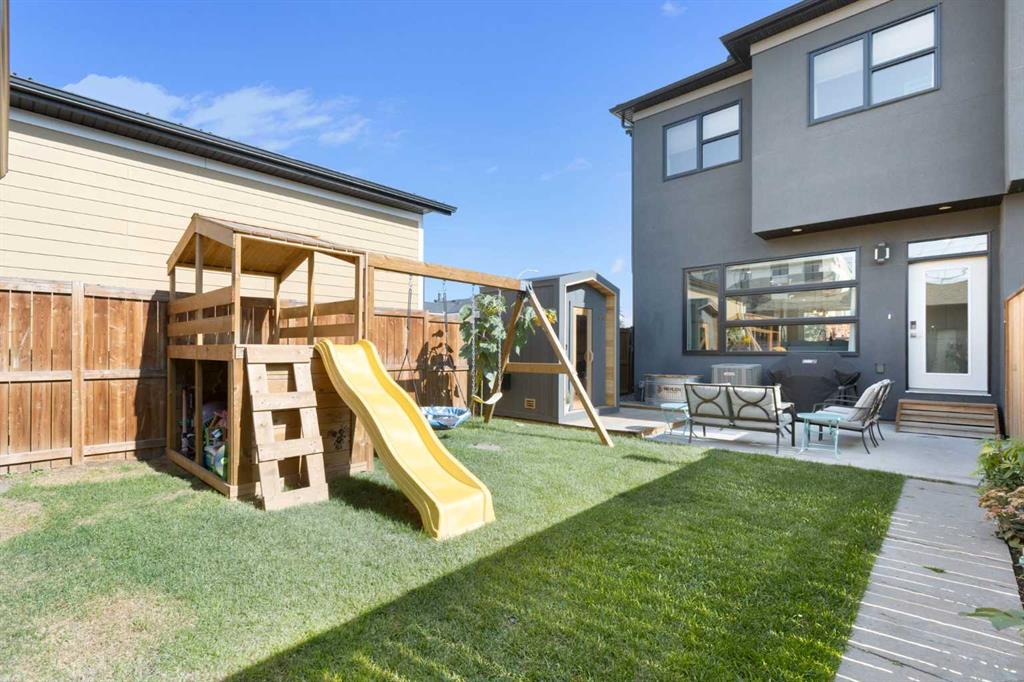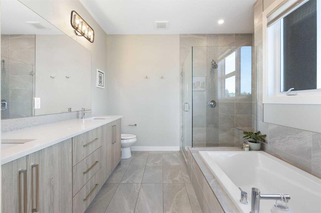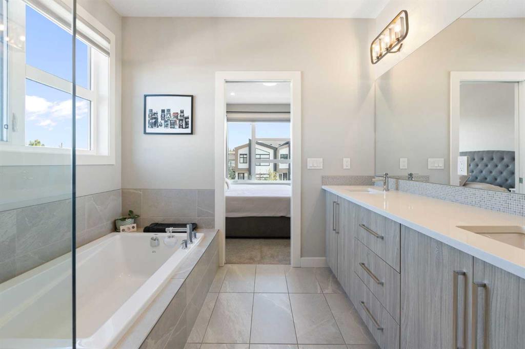 Experience the pinnacle of modern luxury in this custom-built, semi-detached sanctuary located on a tranquil, extra-wide street in the heart of Bowness. Beyond the striking contemporary facade lies an interior defined by sophisticated design and effortless flow. The main level is flooded with natural light from expansive west-facing windows, illuminating wide-plank luxury vinyl flooring and a seamless open-concept layout crafted for both grand entertaining and intimate family moments. At the center of the home is a gourmet kitchen that is as functional as it is beautiful. An oversized quartz island with seating for five serves as a natural gathering spot, complemented by chic pendant lighting, high-end cabinetry, and premium finishes. The transition from the designer dining area to the living room is flawless, anchored by a cozy gas fireplace with a refined wood mantle and custom built-ins that add a touch of architectural interest. Practicality is tucked away discreetly in the form of a stylish powder room and a dedicated rear mudroom designed to handle the demands of an active lifestyle. The upper floor is a masterclass in comfort, headlined by a primary retreat that feels like a boutique hotel. The five-piece ensuite offers a true spa experience with a deep soaker tub, a glass-enclosed shower with a bench, and dual vanities, all adjacent to a large walk-in closet. Two additional spacious bedrooms share a thoughtful five-piece bath, while the upper-level laundry room—complete with a sink and built-in storage—adds a layer of modern convenience that is often overlooked. Entertainment options continue in the fully finished basement, where high ceilings and a spacious family room create an inviting atmosphere. Whether you're hosting movie night at the wet bar or accommodating guests in the private fourth bedroom and full bathroom, this level adds significant value and versatility. The outdoor space is a rare find, featuring a sunny southwest-facing backyard designed for ultimate relaxation. From summer barbecues on the patio to quiet evenings in your private backyard sauna, this space is an urban oasis. With a detached garage and a location that puts the Bow River pathways, Bowmont Park, and Winsport at your doorstep, this home offers an unparalleled lifestyle. Enjoy the peace of a tight-knit community with the mountains and downtown Calgary just a short drive away. Don’t miss your chance to call this move-in-ready gem your own -book your Showing today!