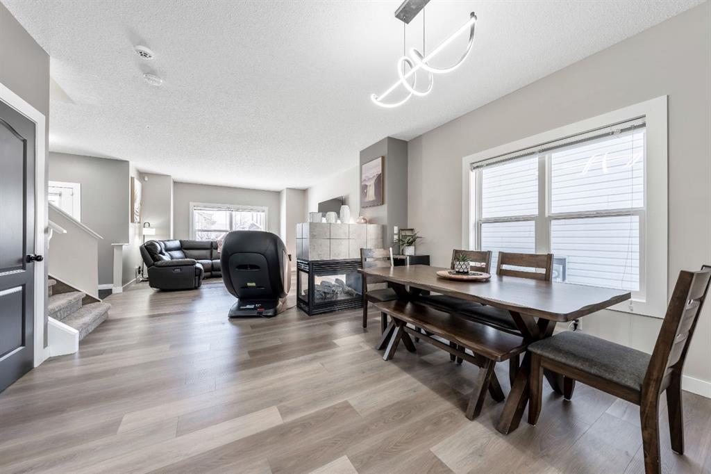 This thoughtfully designed home offers nearly 2,350 square feet of fully developed living space and is ideally located on a quiet street in the family-friendly community of Cimarron. Upon entry, you’re welcomed by soaring 9’ ceilings, a spacious front foyer, gleaming new flooring, and stylish updated light fixtures. The inviting front living room is filled with natural light and features a three-sided fireplace that adds warmth and ambiance. Adjacent is the bright dining area. This seamlessly connects to the chef-inspired kitchen, complete with rich espresso cabinetry, gorgeous granite countertops, new stainless steel appliances, a tile backsplash, and a convenient corner pantry. This level also includes a tucked-away powder room and a rear mudroom area with direct access to the backyard—perfect for entertaining with a large deck, raised garden beds, and a carport. Upstairs, you’ll find two generously sized bedrooms, a full 4-piece bathroom, and an expansive primary retreat. The primary suite is a true sanctuary, offering a large walk-in closet and a private 4-piece ensuite. The fully finished lower level expands your living space with a large rec room, a fourth bedroom, a 4-piece bathroom, a dedicated office, and a laundry room. Ideally located within walking distance to schools, parks, pathways, shopping, and professional services, this home offers both comfort and convenience. Schedule your private showing or view the virtual tour today.