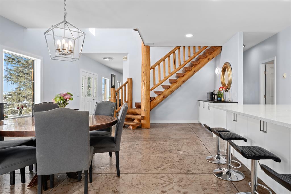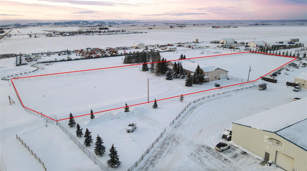 RARE LIVE/WORK OPPORTUNITY WITH EXCELLENT ROAD EXPOSURE FOR YOUR BUSINESS! 3.35 ACRES, ZONED C-HWY (MIXED USE, SEE SUPPLEMENTS FOR DETAILS). This one-of-a-kind property is located 10 minutes north of Cochrane (HWY 22 & HWY 567) and offers a fully renovated 2751 SQ FT home with a 4169 SQ FT commercial space. The bright and open main floor features a spacious living room with office space, a cozy dining room, and a 3 piece bath/laundry all highlighted by gorgeous stamped concrete floors. The luxurious chef’s kitchen offers quartz countertops, a spacious island/breakfast bar, a coffee station with a second sink, ample cabinet space, and high-end appliances – perfect for entertaining and the at-home gourmet. Upstairs, relax in the primary retreat which includes an upscale 5-piece ensuite (relaxing soaker tub, stand-up shower, double sinks), a large walk-in closet, and views of the Rocky Mountains. Completing the upstairs are 3 additional bedrooms, a 4 piece bathroom, and plenty of storage. You will fall in love with the oversized (49'2" x 21'2" 0), heated/insulated garage where you could easily park 6 vehicles/toys - perfect for a home mechanic, car enthusiast, or tradesperson. The commercial space offers a huge showroom, front desk, office, 2 bathrooms, loft/office, and additional garage. This space is ideal for any entrepreneur or established business. Other features included a custom log wood staircase, a large patio, new chain link fencing & amazing views. Ideally located just minutes from Cochrane and a short commute to Calgary this property offers huge potential and would be hard to recreate. Please reach out for more details and to arrange a private viewing. *** RESIDENTIAL - 2751 SQ FT, COMMERCIAL - 4169 SQ FT. ***