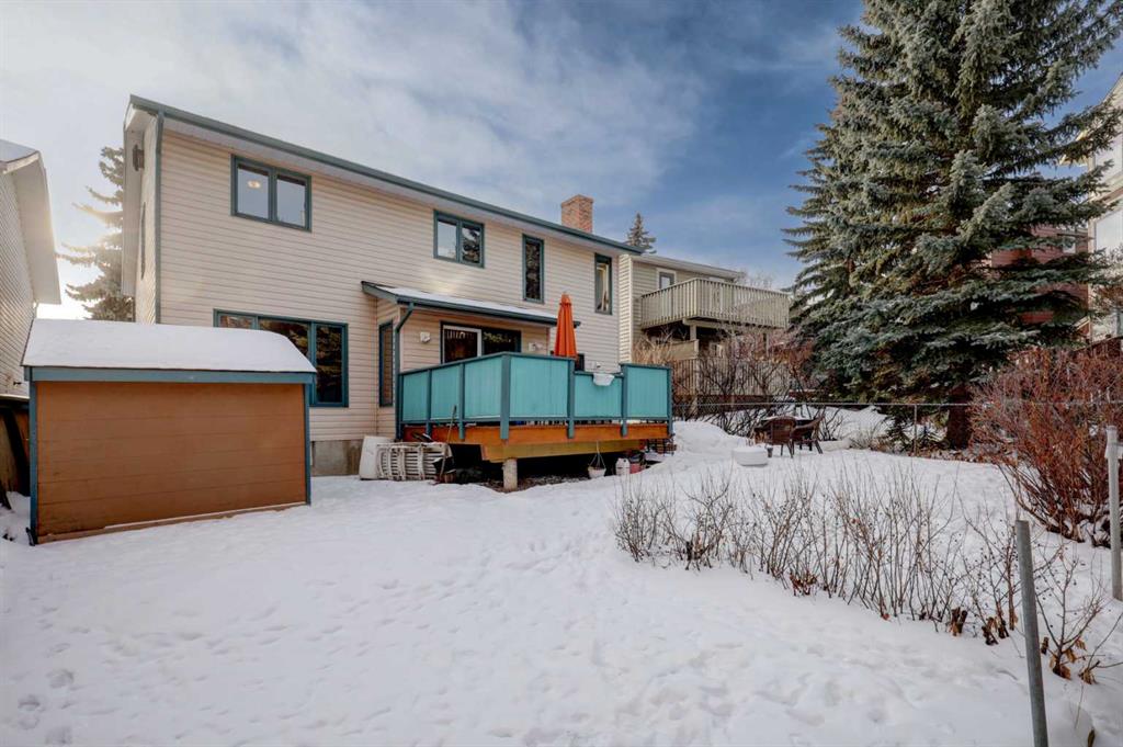 Welcome to this well-maintained, original owner, two-storey family home located in the established community of Strathcona. The bright & open layout is enhanced by vaulted ceilings that create an inviting sense of space throughout the main level. The heart of the home features a beautiful white kitchen, a comfortable living room with a cozy fireplace, & a convenient main-floor laundry room. Upstairs, the spacious primary bedroom is complemented by two additional good-sized bedrooms & an open loft area—perfect for a home office, play area, or reading nook. The fully finished basement offers a large recreation room complete with a bar, making it an ideal space for entertaining or relaxing with family & friends. Step outside to enjoy the mature, fenced backyard with a large deck—perfect for summer gatherings. Additional highlights include a double attached garage & thoughtful updates such as a new fridge & stove (2023) & hot water tank (2022). Ideally located close to schools, a bus stop, & within easy walking distance to the C-Train station, this home offers excellent access to downtown & everyday amenities while being tucked into a quiet, family-friendly neighbourhood. You’ll love living here!