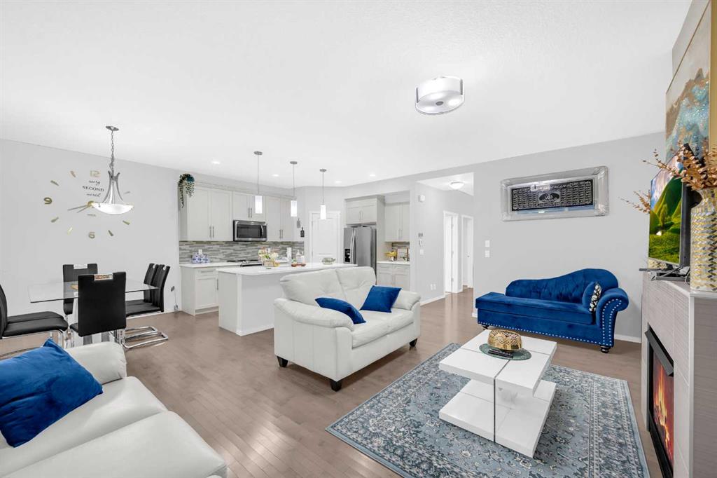 Welcome to this exceptionally crafted, custom-built home by Avi, nestled in the prestigious and family-friendly community of Nolan Hill NW Calgary. Impeccably maintained this exquisite residence offers over 2,039 sq ft of thoughtfully designed living space across two levels, featuring 4 bedrooms, 3 full bathrooms, a spacious upper bonus room, and an unspoiled basement ready for your personal touch. From the moment you arrive, you’ll be captivated by the elegant curb appeal, inviting entryway, and the sense of quality that flows throughout the home. Step inside to discover a warm and welcoming open-concept main floor designed with both functionality and sophistication in mind. Rich dark hardwood floors, 9-foot ceilings, and designer-neutral tones create an atmosphere of understated luxury. The living room offers a serene retreat with a beautiful gas fireplace, perfect for cozy evenings, while the adjacent dining area seamlessly opens onto a large outdoor deck—ideal for summer entertaining or relaxed family meals. At the heart of the home lies the gourmet chef’s kitchen, expertly appointed with polished quartz countertops, premium stainless steel appliances**, a large central island with seating, and an abundance of cabinet space, including a corner walk-in pantry—perfect for those who love to cook or entertain. Whether you're hosting a dinner party or preparing a quiet family meal, this kitchen is sure to impress. One of the unique highlights of the main floor is the private bedroom with a full ensuite bathroom—a rare and thoughtful feature ideal for aging parents, guests, or a home office. Oversized triple-pane windows throughout the home fill every room with natural light while offering enhanced energy efficiency and quiet comfort year-round. Upstairs, you’ll find three generously sized bedrooms, including the luxurious primary suite, which serves as your own private retreat. This beautifully appointed room features a walk-in closet and a spa-inspired ensuite bathroom complete with a deep soaker tub, separate glass-enclosed shower, and dual vanities. The upper level also includes a large bonus room, perfect for family movie nights, a kids’ playroom, or a stylish home office, as well as a convenient laundry room with a modern washer and dryer. The unfinished basement offers an additional 846 sq ft of space, already roughed-in for a bathroom and central vacuum, providing the perfect canvas for future development—whether you envision a home theatre, gym, recreation area, or guest suite.Additional luxury features include a whole-home water softener system that protects your appliances and keeps your skin and hair feeling soft, double attached front garage, and extra parking on both the driveway and the street for added convenience.