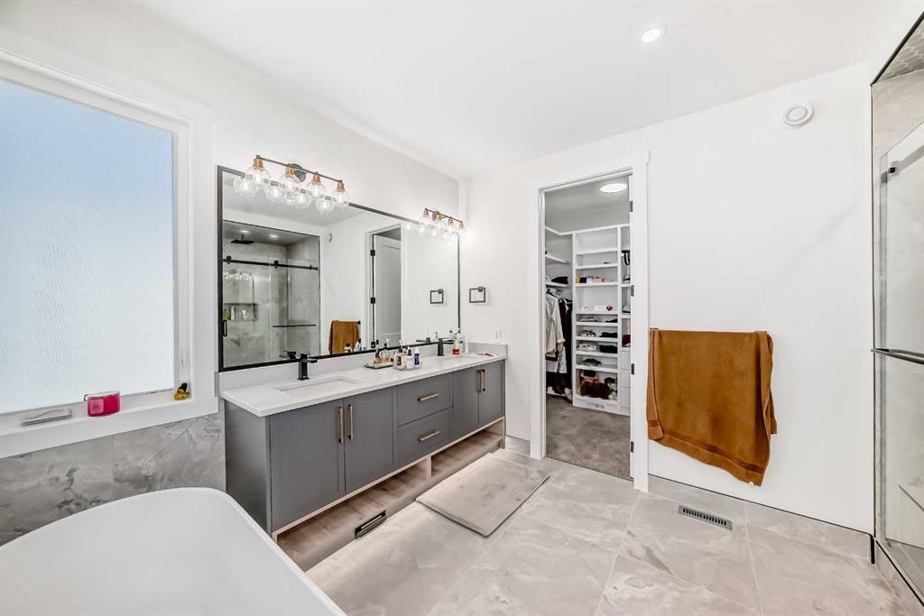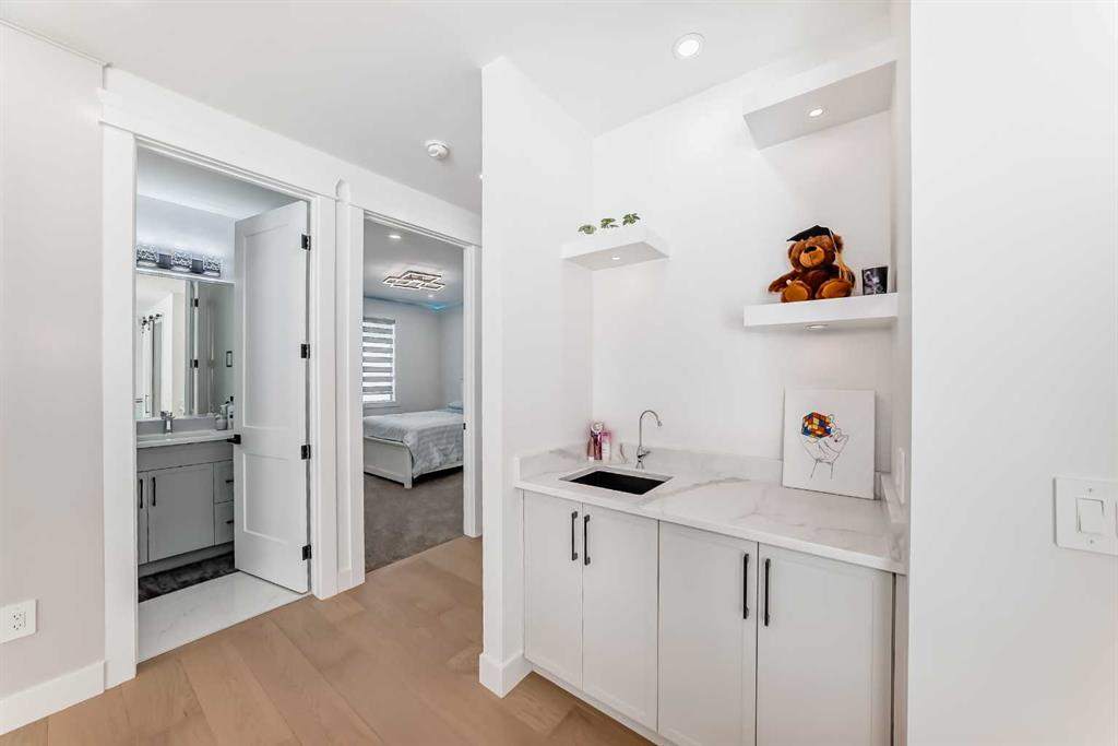 Welcome to this gorgeous 4,889 SqFt custom built home nestled in community of Cambridge Park - minutes from NE Calgary. Boasting with modern and elegant design, this 6 bedroom, 6.5 bathroom, 2 storey home with over 4,800 sqft of developed living space on the main and upper levels is one you don't want to miss. Every detail matters; from the hidden in-floor heat vents to the grand chandelier hanging in the 20ft ceiling front living room. The main level's open floor plan with high ceilings, pot lighting, oversized windows is bright and spacious. This home is made for entertainment. This chef's kitchen will stop you in your tracks. Full height cabinetry, electric cooktop, built-in oven, farmhouse sink, incredible light fixtures, and an oversized centre island with barstool seating. Remember, you can always keep this kitchen sparkling by using the spice kitchen/butler's pantry. The spice kitchen features an electric stove, crisp backsplash, plenty of counter space and great pantry for dry good storage. This open floor plan kitchen, family and dining room makes this home an entertainer's palace! The dining room is framed with windows and sliding glass French doors to the balcony. Indoor/outdoor dining is at your fingertips! The deck is BBQ ready with a gas-line hookup. The family room's statement piece is the floor to ceiling tile wall with an electric fireplace. Passed the family room is a main level bedroom with closet space and 4pc ensuite. The main level mudroom accessed through the interior garage door is outfitted with built in shelving. This level is completed with a 2pc bathroom. Upstairs holds 4 massive bedrooms, each with great closets. Open the door to the primary bedroom to bask in the beauty. This 5pc ensuite is truly a spa; dual vanities, custom light fixtures, large mirror, soaking tub, a private toilet and a walk-in closet. The 2nd primary bedroom with an ensuite leads to the walk-in closet. The 2 remaining bedrooms are spacious each with great closet space. Sitting at the top of the stairs is a bonus room; private family seating, a home office or a kids reading corner. The upper level is finished with a hall closet and a laundry room with a sink and cabinet storage above & below. Downstairs, the basement has standing wet bar with barstool seating. On top of this, the basement has both living space and a bedroom & bathroom. Outside is a 3 car garage with an oversized driveway that fits many vehicles. This home needs to be seen in person to truly experience its beauty. Book your showing today!