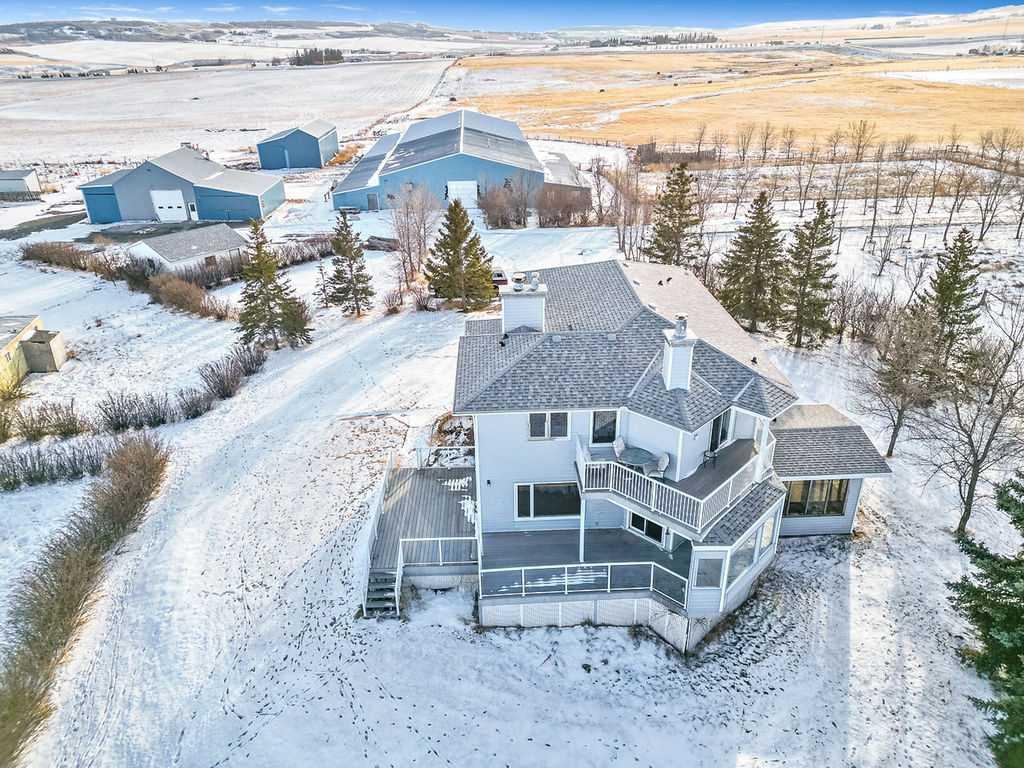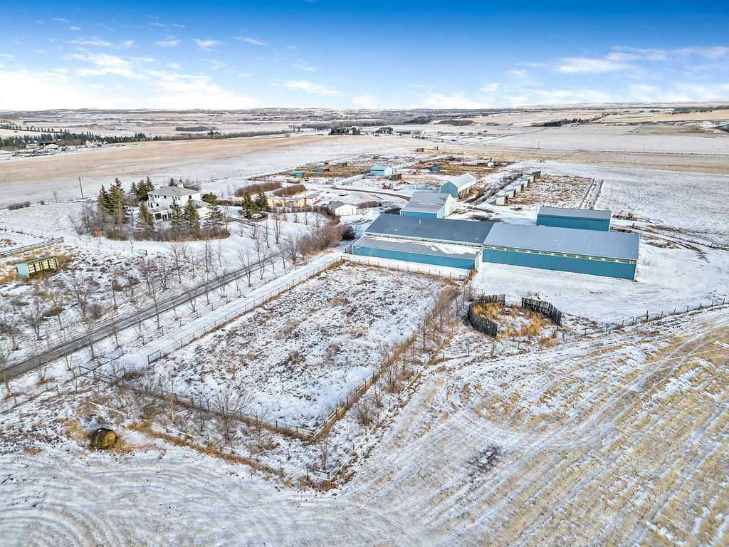 The perfect location for your next dream venture lies 8 km west of Okotoks at 373108 48th Street! Whether your vision is a private equestrian facility, or something more expansive, this exceptional property offers a rare opportunity. Follow the tree-lined driveway to a beautifully positioned two-story 2,268 sq. ft. home, perched atop the hill. The residence features West-facing mountain views, hardwood floors, and thoughtful attention to detail throughout. Upstairs, you’ll find three spacious bedrooms with ample closet space, custom storage & a master suite balcony. Bathrooms are conveniently located on every level, including a generous primary ensuite overlooking the mountains. The fully developed walkout basement offers a media area and a sauna/hot tub room with direct access from the house. Covered parking is abundant, with a double attached garage and an additional double detached garage located at the base of the driveway. From the house, enjoy sweeping southern views across 145+acres of productive pasture and hay land. Directly across the driveway sits a 70'x200' indoor arena complete with an attached heated stalling area and wash facilities. An outdoor riding arena is conveniently located beside the barns, ideal for summer use. The arena is well-equipped with a full four-piece bathroom, a tack locker room, kitchen facilities, and an office. The facility is thoughtfully designed with over 20 paddock spaces, all featuring automatic waterers and shelters. Two wells & a cistern system service the property, ensuring ample water supply. The layout of the property has been carefully planned, including an additional barn located among the paddocks, ideal for tack storage or veterinary work. A pole barn provides a generous amount of hay storage, and a heated shop offers secure space for tractors, equipment, and supplies. With so much to explore, come and enjoy what it truly means to be in the heart of the Foothills!