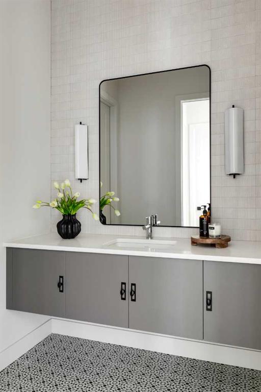 Welcome Home to Lupi Luxury Homes 8 Rockcliff Hill NW, this distinguished residence epitomizes the pinnacle of luxurious living. 4 oversized bedrooms each with their own ensuites and walk-in closets. This lovely home seamlessly integrates with its surroundings through a thoughtfully designed layout, boasting 6 bedrooms and 6 bathrooms. A standout feature is the 3-car garage with ceiling heights to accommodate a car lift. As you step inside, a wealth of high-end amenities unfolds, illuminated by natural light streaming through triple-pane Loe2 windows. The gourmet kitchen, with rich white cabinetry to the 10’ ceiling and darker oversized island, showcases a built-in stainless steel, double fridge / freezer and upgraded gas range, dishwasher, microwave, hood fan, bar fridge, creating a culinary haven for residents and guests. Elevating the living experience, the residence boasts large deck off the professionally landscaped oversized back yard. A captivating stone fireplace becomes a central focus, infusing the space with warmth and inviting ambiance. The master ensuite is a true retreat, featuring a curb less walk in shower, soaker tub and his and hers vanity sinks and a large walk-in closet. Technological sophistication with a security system includes, and various powered window coverings. The home is adorned with exposed aggregate concrete, a high-end double furnace system with two air conditioning units included, ensures year-round comfort. Elegance permeates every corner, from an exquisite