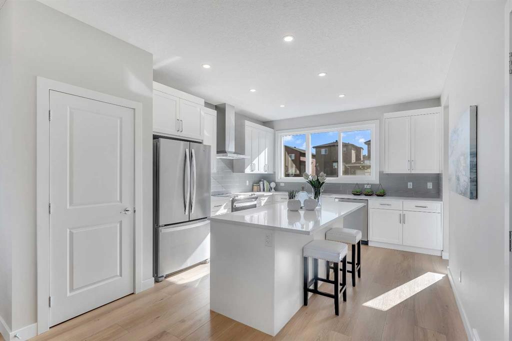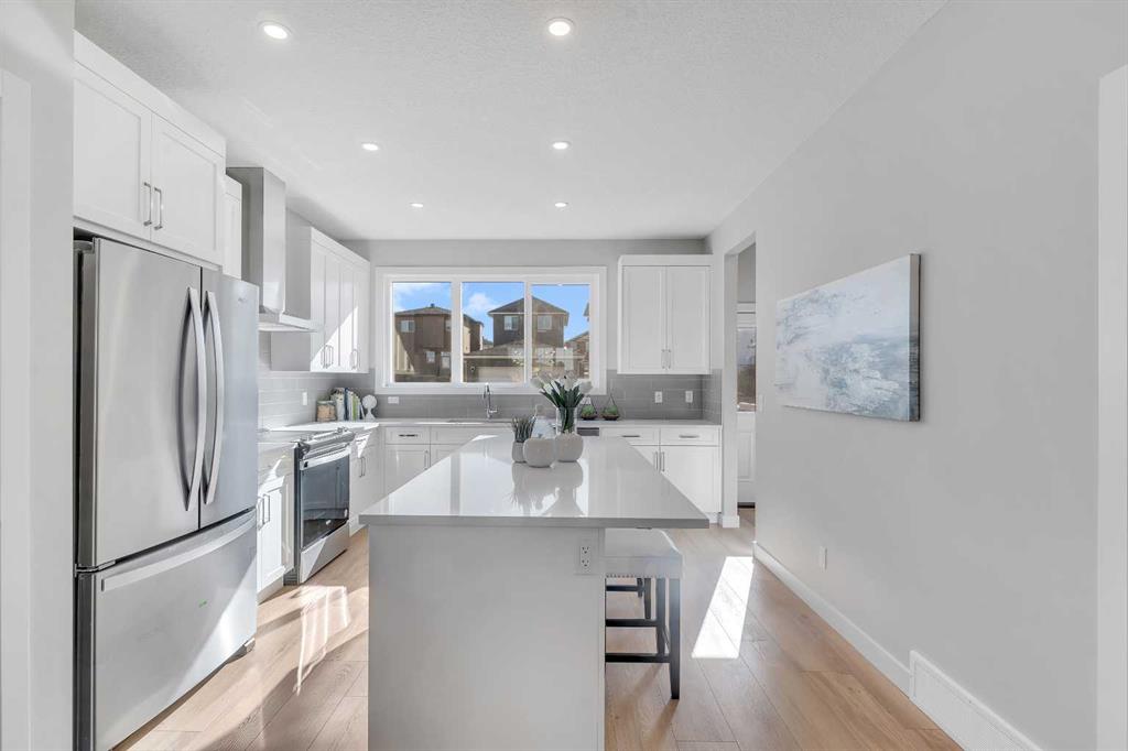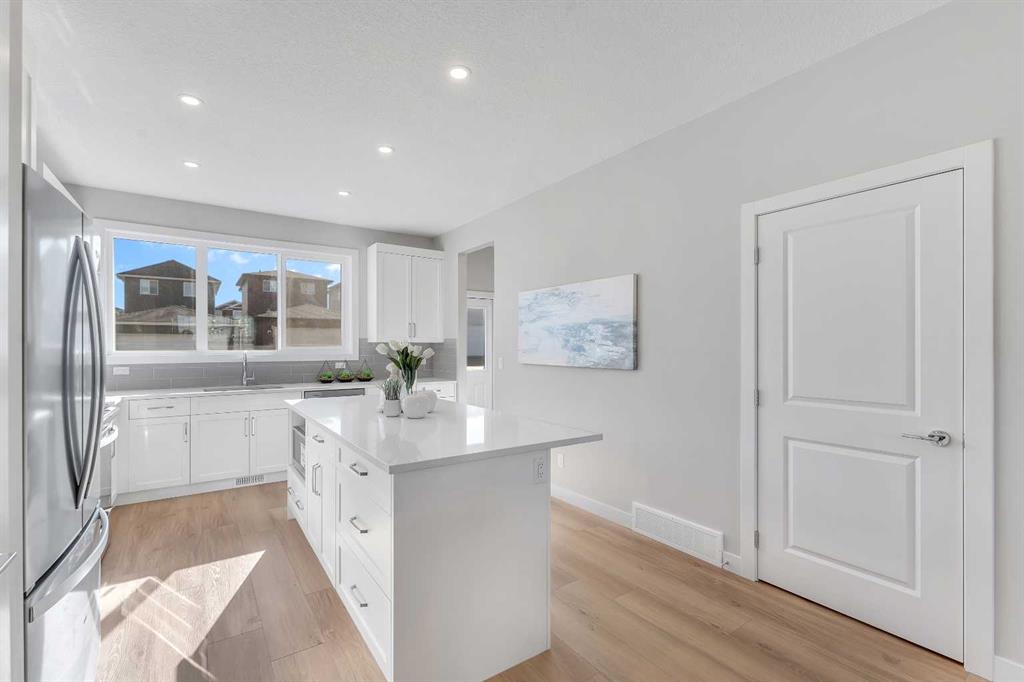 Welcome to this stunning, brand-new Alliston at Home build, where integrity and quality are never compromised. Offering over 1,600 sq. ft. of modern living space and beautiful finishes, this home strikes the perfect balance between elegance and everyday comfort. Step inside and be greeted by a bright, open-concept main floor with airy 9’ ceilings, stylish wide plank vinyl flooring and a colour palette that will please. Sunlight pours in through triple-pane windows, highlighting the spacious front living room and inviting dining area. At the heart of the home, the kitchen gleams with quartz countertops, sleek stainless steel appliances, ample 42” cabinetry, and a generous island that’s just waiting for weekend brunches and lively gatherings. A handy nook, dedicated pantry, mudroom, and powder room make daily routines a breeze. Upstairs, a serene primary suite will be your favourite retreat, welcoming you with a walk-in closet and a private en-suite. A central loft offers a cozy corner to unwind, providing separation from the two additional bedrooms. A full bathroom and a convenient upstairs laundry room keep everything beautifully organized and comfortable. The unfinished basement, with its 9-foot ceilings and private side entrance, is a blank canvas brimming with possibility. Out back, the sunny west-facing yard is ready for your personal touch, and with the option to build your dream garage, you can create the perfect outdoor oasis. Tucked away in Iron Landing, one of Crossfield’s best-kept secrets, this community blends small-town charm with easy access to the highway, nearby schools, and parks. Head to Stacks and grab your morning coffee, enjoy lunch at Shortys Fish and Chips, treat yourself to a donut man donut, then go work it all off at Crossfield Fitness, Spin or Yoga. Life moves a little slower in Crossfield, and new homes offer significant value. This is where new memories are waiting to be made, and it is a great place to call home.