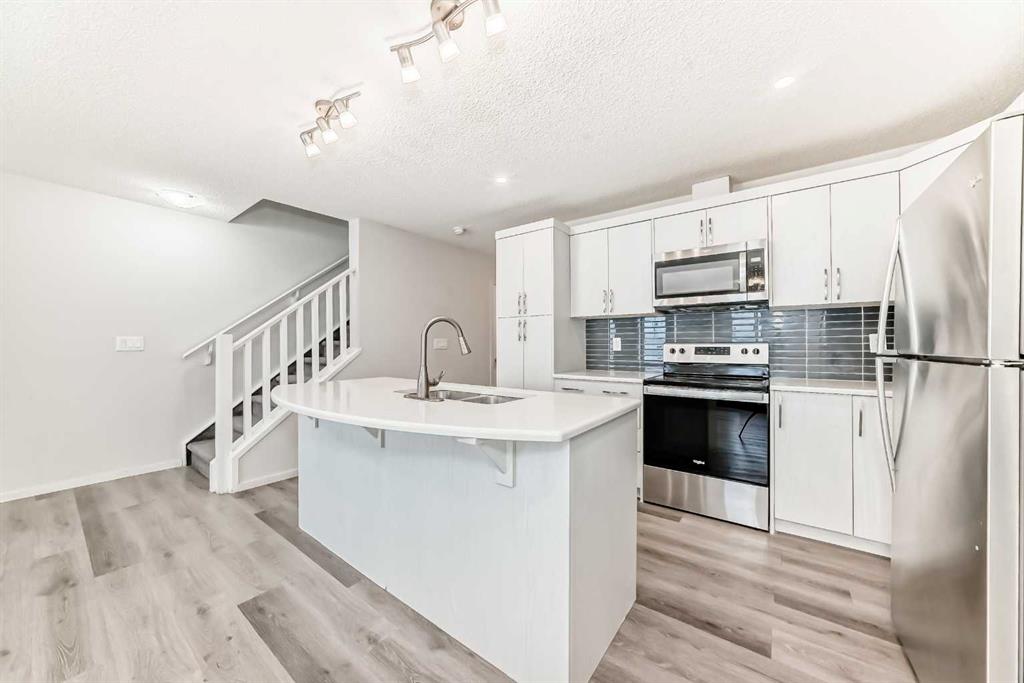 NO CONDO FEES in the over 1439 sq ft, 3 bdrm, 2.5 bath townhouse, with dbl attached garage. If you are looking to own your first home that is affordable and feels like new, look no further. Walking in, you will enjoy the open floor plan, vinyl plank flooring, a beautiful white kitchen with quartz counters, SS appliances, and a kitchen island with seating for 3. There's a 2-piece bathroom on the main as well as a mud room area before entering the double attached garage. Upstairs features 3 bedrooms. The primary bdrm will fit your king-size bed and has a 4-piece ensuite bath with quartz counters and a soaker tub. The walk-in closet is huge, bigger than many large homes. The other 2 bdrms are a good size, as well as a laundry room and another 4-piece bathroom with quartz and a soaker tub. The downstairs is plumbed for the bathroom, it's ready to go. There's a fresh air system added. The best part is it's conveniently located to No Frills, gas, restaurants, Purple Potomus preschool learning, schools and much more. The bus route is close by, with easy access to Stoney Trail, and the shopping center in Coventry Hills is 5 minutes away, with Superstore, Canadian Tire, Dollarama, Shoppers Drug Mart, Winners, Michaels, Staples, Home Depot, Vivo Recreation Center, IMAX movie theatre, many restaurants, and excellent stores. It's a win-win-win in any way that you look at it. priced sharply, and quick possession available.