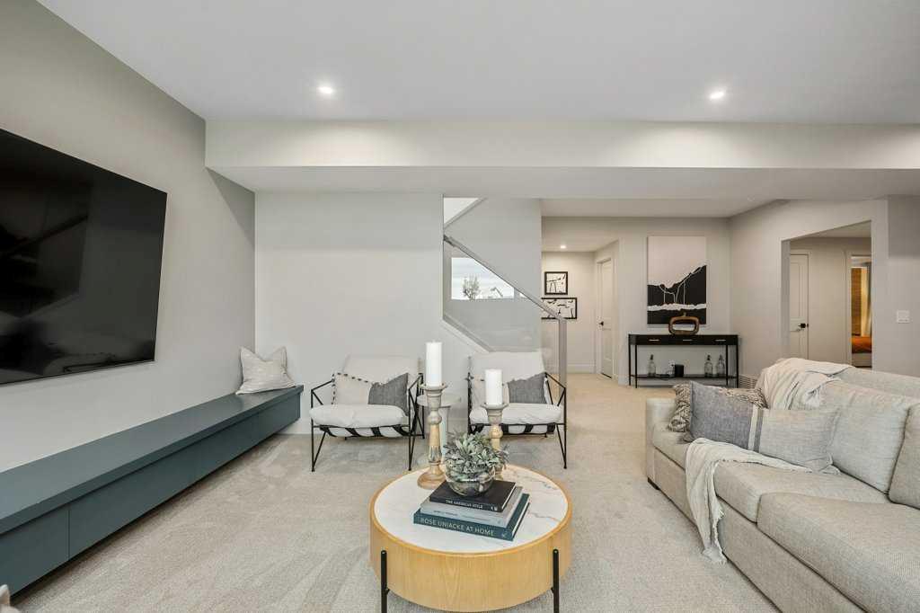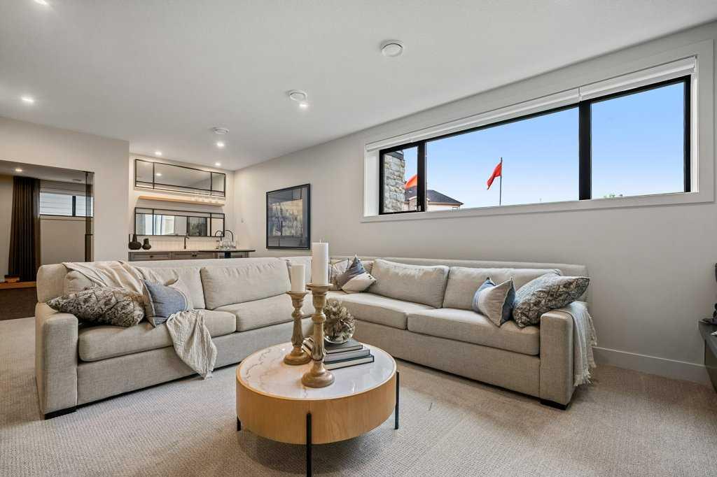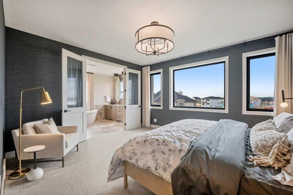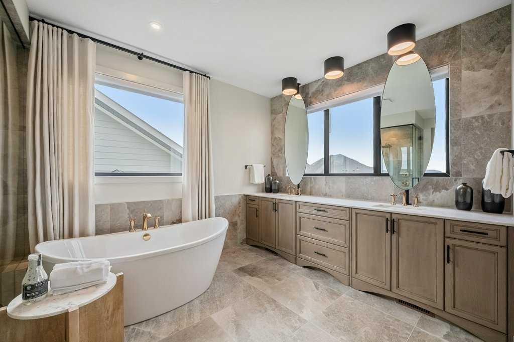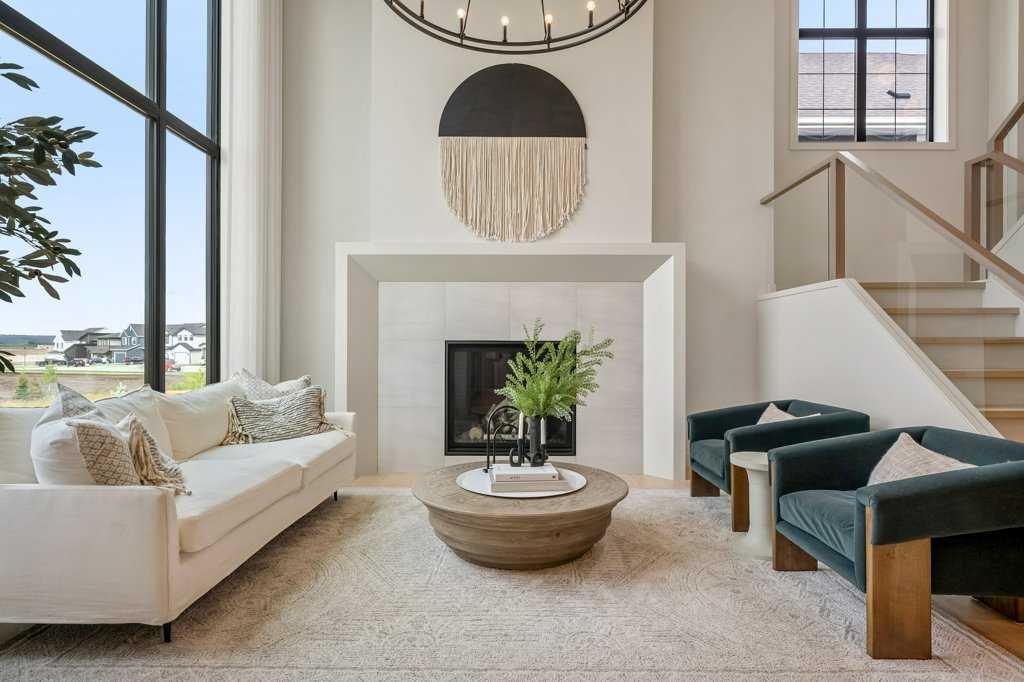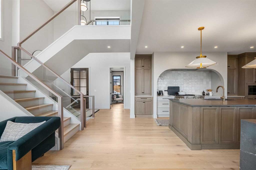Lake side living at its finest! Presenting the Scarlett Show Home built by Baywest Homes. Ideal for the modern family at just over 5,000 square feet of total developed space, featuring 4 bedrooms, plus generous living and gathering spaces all wrapped in an abundance of style, design and the over-the-top upgrades you would expect in Harmony Estates. Gemstone lighting, a triple front garage, central air, custom window treatments and lighting, a grand open to above, covered deck, 4 full baths, a gym, butlers pantry, generous size mudroom and enclosed front den. Enter into engineered flooring, dual island concept in the kitchen within the themed concept of entertaining and hosting, side by side professional fridge, freezer and gas stove. Built in's throughout the main floor space including the dining area, butlers pantry, den and lower level recreation room. The 'WOW' factor offered from the open to above lifestyle room with its focal 2 story fireplace offers natural light throughout this space. The family convenience of a spacious mudroom located off the butlers pantry, secondary pantry with a corridor hall connecting the front foyer hidden behind the stunning main floor design. An upper floor created for personal space, but welcoming to all. The 3 upper bedrooms situated to the front of the home smartly designed with a 5-peice Jack and Jill en-suite opposite the 3rd bedroom with its own private 4-peice en-suite bath. The laundry area is located just off the bridge access to this level and rests beside the vaulted bonus room. Dual door access to the rear primary bedroom overlooking the green space and walking paths with heated floors in the 5-piece en-suite bath, a full size shower, soaker tub, full width vanity, his and her sinks, an abundance of storage giving off the 5 star hotel vibes from the hanging mirrors to the faucets and fixtures. A lower level for room to relax and gather with a recreation room, wet bar, 5th bedroom and a pocket door to the 4-piece lower bath with heated floors from the curated gym space. Your outdoor space has a covered deck with access to the walking paths, a short trip to current and future local amenities as well as the beach club, Launchpad and Mickelson National Golf Course.