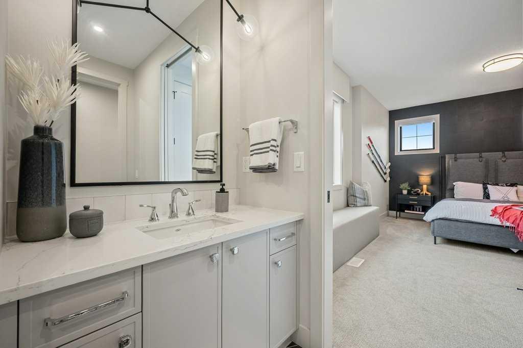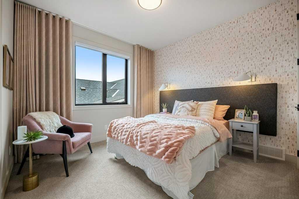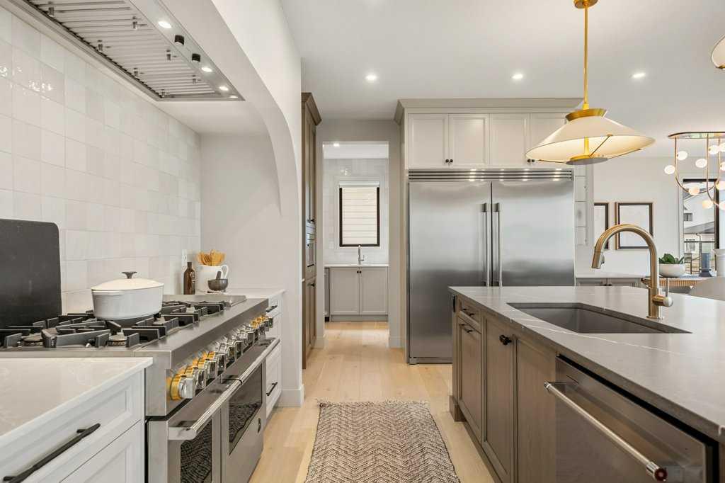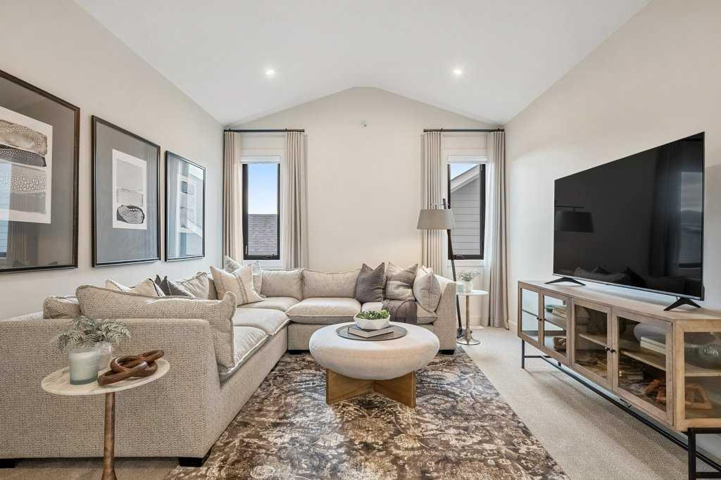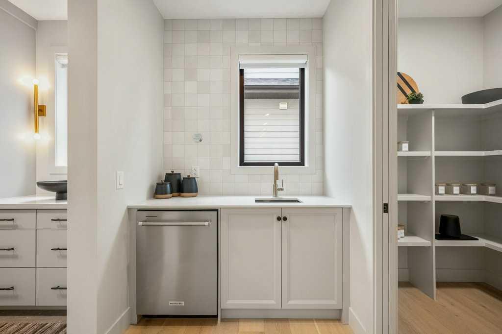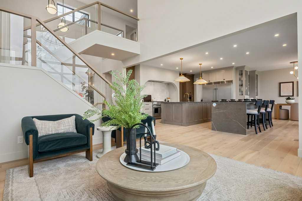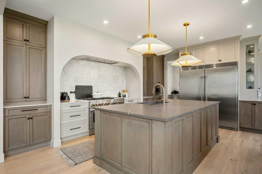 Lake side living at its finest! Presenting the Scarlett Show Home built by Baywest Homes. Ideal for the modern family at just over 5,000 square feet of total developed space, featuring 4 bedrooms, plus generous living and gathering spaces all wrapped in an abundance of style, design and the over-the-top upgrades you would expect in Harmony Estates. Gemstone lighting, a triple front garage, central air, custom window treatments and lighting, a grand open to above, covered deck, 4 full baths, a gym, butlers pantry, generous size mudroom and enclosed front den. Enter into engineered flooring, dual island concept in the kitchen within the themed concept of entertaining and hosting, side by side professional fridge, freezer and gas stove. Built in's throughout the main floor space including the dining area, butlers pantry, den and lower level recreation room. The 'WOW' factor offered from the open to above lifestyle room with its focal 2 story fireplace offers natural light throughout this space. The family convenience of a spacious mudroom located off the butlers pantry, secondary pantry with a corridor hall connecting the front foyer hidden behind the stunning main floor design. An upper floor created for personal space, but welcoming to all. The 3 upper bedrooms situated to the front of the home smartly designed with a 5-peice Jack and Jill en-suite opposite the 3rd bedroom with its own private 4-peice en-suite bath. The laundry area is located just off the bridge access to this level and rests beside the vaulted bonus room. Dual door access to the rear primary bedroom overlooking the green space and walking paths with heated floors in the 5-piece en-suite bath, a full size shower, soaker tub, full width vanity, his and her sinks, an abundance of storage giving off the 5 star hotel vibes from the hanging mirrors to the faucets and fixtures. A lower level for room to relax and gather with a recreation room, wet bar, 5th bedroom and a pocket door to the 4-piece lower bath with heated floors from the curated gym space. Your outdoor space has a covered deck with access to the walking paths, a short trip to current and future local amenities as well as the beach club, Launchpad and Mickelson National Golf Course.