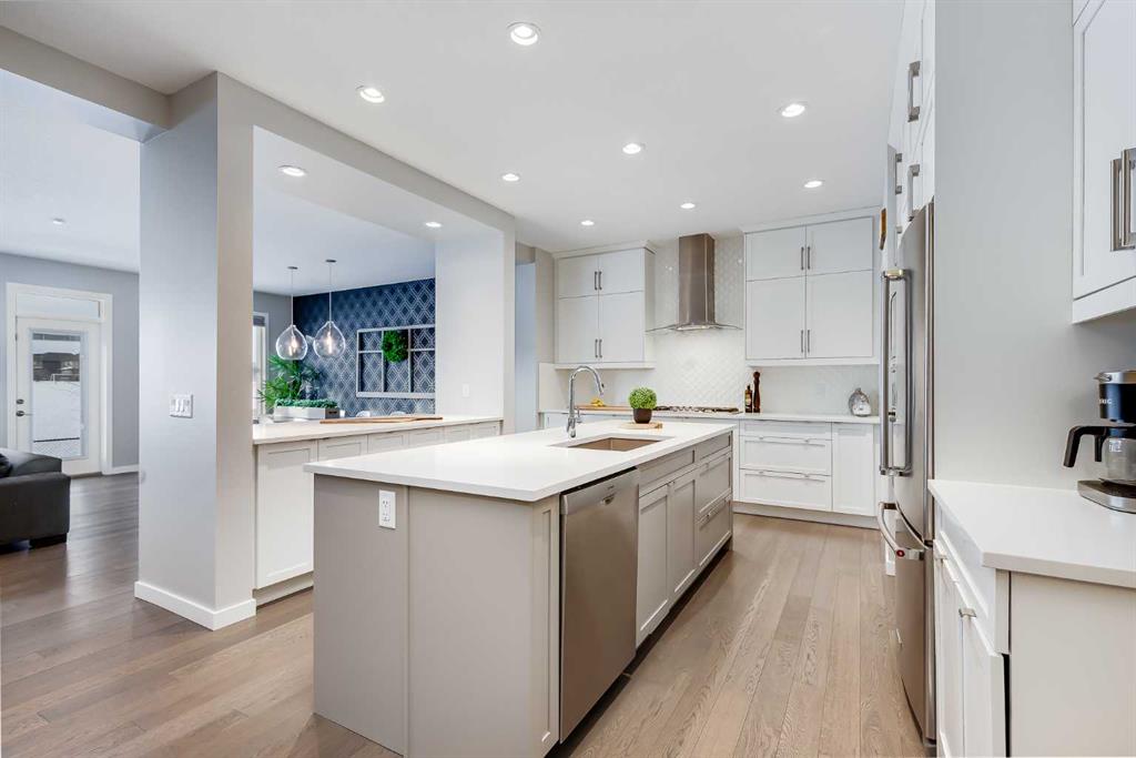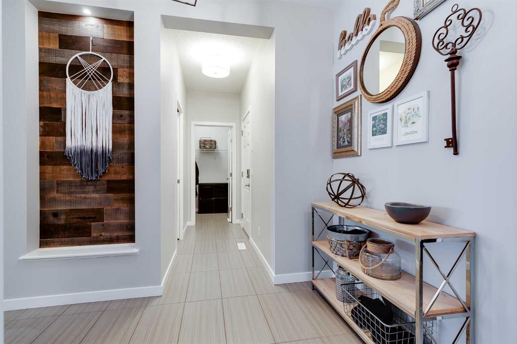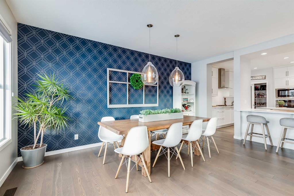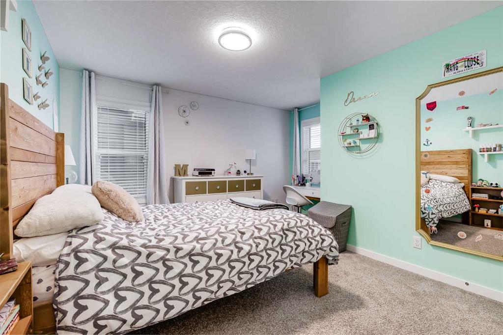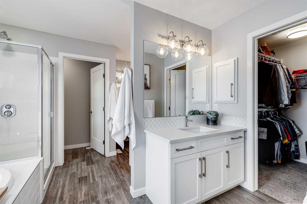 Located in the sought-after lake community of Auburn Bay, this pristine Jayman Built two-storey home offers over 2,500 sq ft of developed living space and backs directly onto greenspace. From the moment you arrive, the curb appeal is undeniable, with a well-maintained exterior that reflects the care and thought put into every aspect of the home. Designed with both function and comfort in mind, this residence features three bedrooms, two and a half bathrooms, and a double attached garage. The main floor welcomes you with a spacious tiled entryway and nine-foot ceilings, complemented by large windows that fill the home with natural light. The open-concept layout seamlessly connects the kitchen, dining area, and living room. The living room is anchored by a cozy gas fireplace, while engineered hardwood flooring runs throughout the remainder of the main level. The kitchen is a standout, offering full-height white cabinetry, quartz countertops, a tasteful backsplash, and stainless steel appliances, including a gas cooktop. Dual islands provide ample prep space and seating, while a large walk-in pantry ensures excellent storage. A generous dining area sits adjacent to the kitchen, along with a dedicated beverage and coffee station complete with a bar fridge. A two-piece powder room rounds out the main floor. Throughout the home, Hunter Douglas blinds, modern lighting, triple-pane windows, and thoughtfully placed feature walls add subtle style and efficiency. Upstairs, plush carpet leads you to a well-planned layout with bedrooms positioned on opposite ends for added privacy. A central bonus room offers flexible space for relaxing or gathering. The primary retreat enjoys mountain views and a spa-inspired ensuite featuring a standalone shower, soaker tub, dual sinks with individual vanities, a makeup station, and two walk-in closets. Two additional bedrooms share a five-piece bathroom with dual vanities, while a sliding door separates the toilet, tub, and shower area from the sinks for added convenience. A dedicated laundry room completes the upper level. The basement is unfinished and ready for your vision, with nine-foot ceilings that allow for a wide range of possibilities. The backyard is designed for enjoyment and relaxation. A large deck with a pergola includes retractable wind screens and lighting, making it a comfortable space for barbecues, morning coffee, or evenings spent outdoors. The yard is landscaped and backs onto greenspace, enhancing the sense of openness. The oversized double attached garage includes a sub-panel, adding extra functionality. Living in Auburn Bay means exclusive access to the lake and community amenities including a beach, tennis courts, and year-round activities. The home backs onto a field connecting Prince of Peace and Lakeshore Schools, is a short walk to Auburn Bay School, and minutes from JCS High School, Seton YMCA & library, South Health Campus, shopping, dining, major roadways, parks, golf courses, and an off-leash dog park.