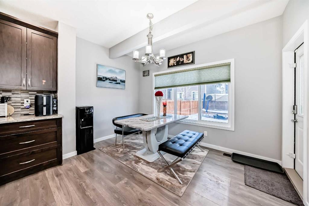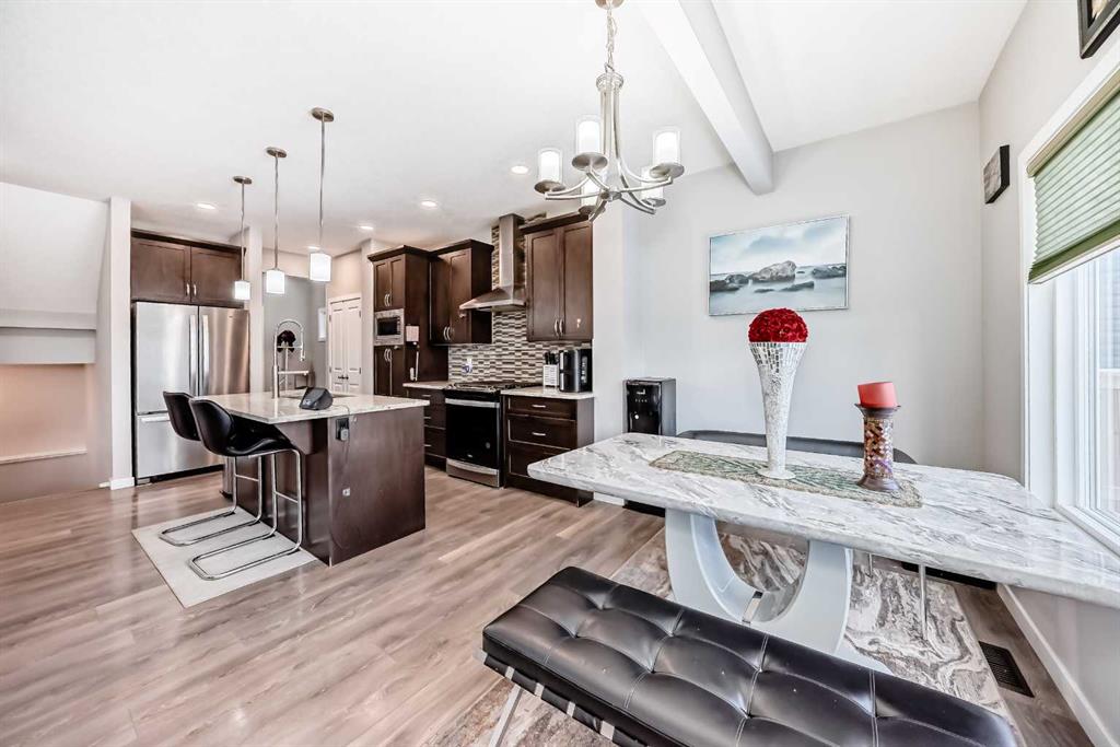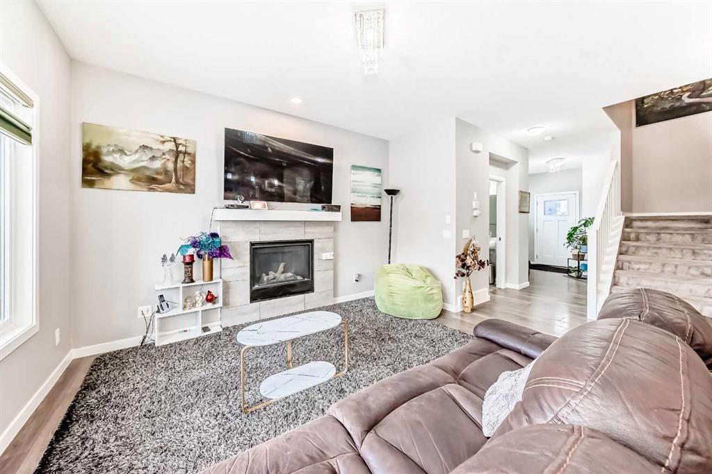 Open House Jan 10, 1-3 pm. Welcome to this beautifully designed 2 story home with AC is located on a large corner lot in Midtown, Airdrie, offering spacious living and a functional layout perfect for growing families. The main level features an inviting open-concept design, complemented by stylish LVP flooring throughout. The kitchen is equipped with stainless steel appliances, ample cabinetry, and flows seamlessly into the dining area ideal for entertaining. Relax in the bright living room centered around a cozy gas fireplace, and enjoy the convenience of a 2-piece powder room and a large mudroom with plenty of storage. Completing the main level is a double attached garage for added comfort and practicality.