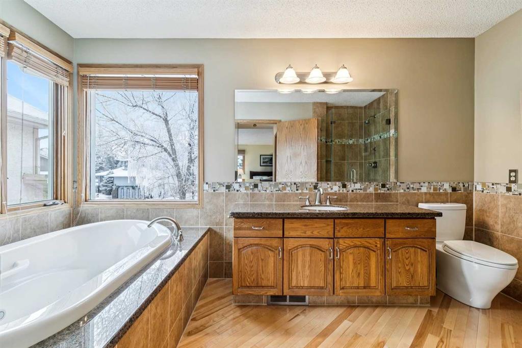 It is rare to find a layout with four bedrooms upstairs, but we have it here. It includes a phenomenal primary suite featuring a renovated ensuite with a beautiful glass shower, a separate soaking tub, and a large vanity.