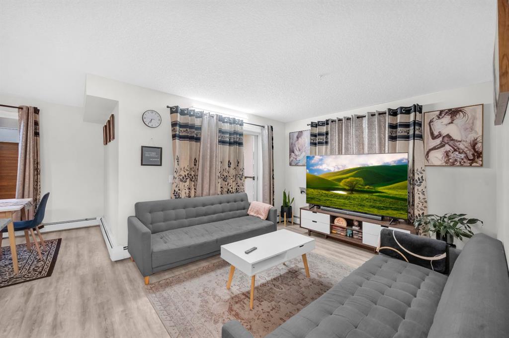Welcome to this bright, newly renovated 2 Bed, 2 Bath condo with 2 underground parking space in Skyview Ranch, offering over 900 sq ft of modern open-concept living. Freshly painted and featuring brand-new luxury vinyl plank flooring in both bedrooms (no carpet!), this move-in-ready home is perfect for first-time buyers, downsizers, or investors. The stylish kitchen boasts stainless steel appliances, a large island with bar seating, and ample counter space, flowing seamlessly into the living and dining areas. Enjoy your morning coffee on the private covered balcony. The spacious primary bedroom features a walk-through closet and 3-piece ensuite, while the second bedroom and 4-piece bath offer privacy for guests. Added perks include in-suite laundry and underground tandem titled parking. Close to schools, daycare, parks, shopping, and major routes, this condo offers unbeatable comfort and convenience. Condo fees include heat, water, and professional management. Book your private showing today!