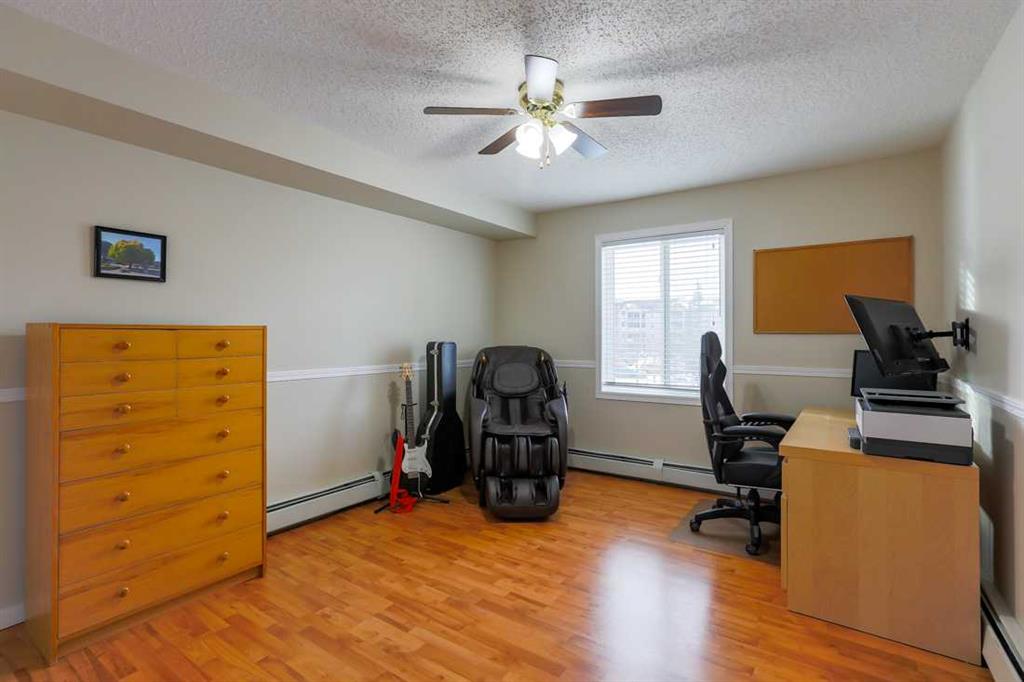 Great location and the largest floor plan in the complex. This 2 bedroom 2 full bathroom unit on the 2nd floor is stunning. Condo fees include ALL UTILITIES. This 1,050 sq ft open concept unit feels very spacious and features a massive west facing patio, suitable for a BBQ, garden beds, or hosting. The large kitchen has great storage, counter space and brand new flooring (renovated Nov 2025) and premium SS appliances. Both bedrooms are a great size. The primary bedroom has a walk through closet leading to a 4pc ensuite bathroom. The 2nd bedroom also has a 4pc bathroom just next to the entrance and 2 large closets for extra storage space. This unit comes with a full laundry room with a brand new washer and dryer (replaced Sep 2025) and a ton of extra storage. Includes a titled underground, heated parking stall. This well-managed and quiet complex has some of the best visitor parking in Airdrie. Located in a very central part of the city, close to schools and shopping with easy access to the highway for those who commute. Book your showing today!