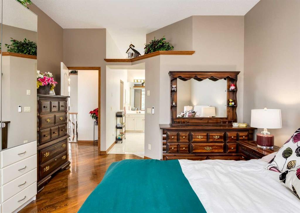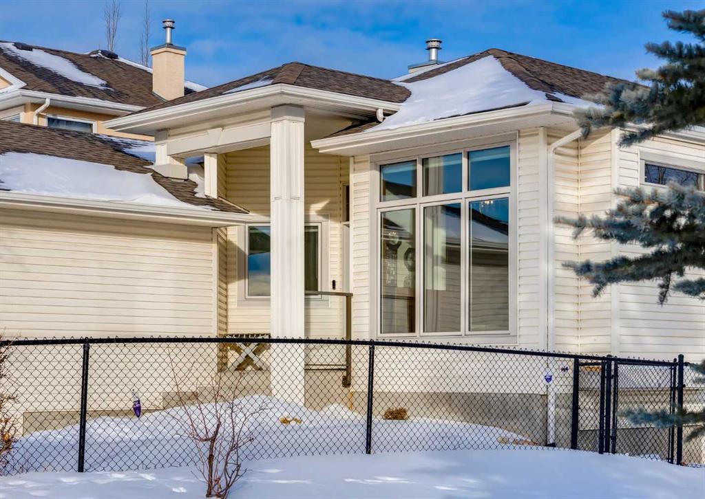 Nestled in the highly sought-after community of Tuscany in Northwest Calgary, this exceptional walkout bungalow presents a rare and unique opportunity to own a home siding/backing directly onto a serene green space and ravine. Meticulously maintained by the original owners, this home exudes pride of ownership from the moment you arrive. Step inside to be greeted by soaring 10' ceilings on the main floor, timeless solid red oak hardwood flooring, and an abundance of natural light flooding through large windows and a skylight. A front den with elegant French doors provides the perfect home office or flex space and the formal dining room features a huge southwest-facing window. The heart of the home is the beautifully updated kitchen by Legacy Kitchens, boasting granite countertops, soft-close dovetail maple drawers, and premium Jenn-Air stainless steel appliances—including an induction stove and convection microwave hood fan. The adjacent breakfast nook overlooks the ravine and pathway system, where wildlife sightings are common. Flow seamlessly into the spacious living room, centered around a stunning three-sided fireplace. Step out to the maintenance-free composite deck with glass railings, complete with a BBQ gas line for effortless outdoor entertaining. The primary bedroom retreat offers updated tile flooring, a luxurious jetted tub, separate shower, and a generous walk-in closet with built in organizers. The 1/2 bath and convenient laundry/mudroom featuring a sink has direct access to the double attached garage and completes the main floor. The fully finished walkout lower level is where you'll find a bright family/media room, a built-in bar with microwave, two additional bedrooms, and a full bathroom—perfect for guests or extended family. There is plenty of storage in the utility/mechanical room. Outside the established yard enhances the peaceful setting, while the side-onto ravine location invites abundant wildlife—spot deer, moose, and more—right from your windows and outdoor spaces. Modern comforts/updates include central air conditioning, powered blinds, an on-demand tankless water heater, water softener, HRV system and majority of windows on the main floor have been updated with Lux Vinyl windows. In the heart of Tuscany—with its extensive pathway network connecting to the 170-acre ravine system, excellent schools, LRT access, and the exclusive Tuscany Club—this home combines luxury, nature, and convenience in one extraordinary package. Properties like this are exceedingly hard to find, offering unparalleled privacy, tranquility, and a front-row seat to nature's beauty. Don't miss this truly rare gem. Click on media for the video and book your private showing today!