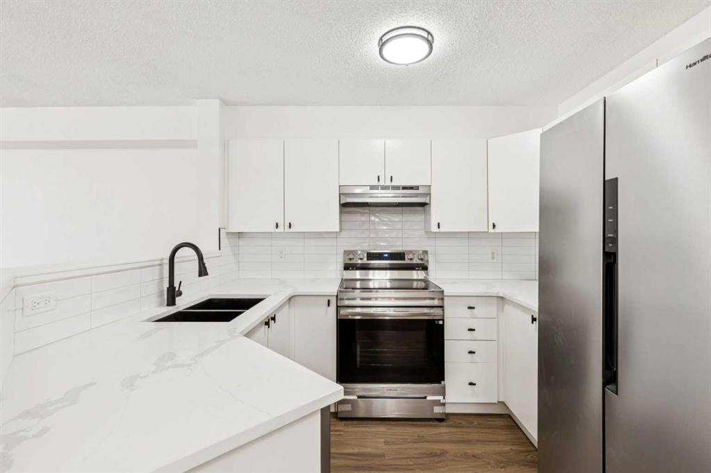Discover Condo 3110 at Monterey Point; A just renovated, 2-bedroom home with courtyard views and underground parking. Here are 5 things we LOVE about this home (and we’re sure you will too): 1. ROOM TO LIVE AND GROW: As condos across the city trend smaller and smaller Condo 3110 is a breath of fresh air! Offering 856 SqFt of refined and functional living space, 2 good sized bedrooms, an updated bathroom and large in-suite laundry/storage room this is a full-size home. The kitchen is tastefully appointed with new stainless appliances, quartz counters and plenty of work/storage space while opening onto a well-proportioned dining area. The living room easily accommodates your furnishings and is accented by a corner gas fireplace while your private patio faces the courtyard and becomes an extension of your living space in the warmer months. 2. LIKE A TOWNHOUSE WITH THE CONVENIENCES OF AN APARTMENT: This home takes the best from both worlds; your own back door, private patio and direct outdoor access much like a townhouse along with the low maintenance, lock and leave lifestyle and underground parking of modern apartment living. 3. MOVE-IN READY: Just renovated with laminate flooring throughout, a beautifully appointed kitchen featuring quartz counters and a stainless-steel appliance package along with an updated bathroom, new fireplace surround and a fresh coat of paint. 4. RARE, COURTYARD VIEWS: Situated in the ideal location in the complex, condo 3110 faces east, directly into the courtyard providing privacy and a tranquil outlook from your living room, bedrooms and patio. 5. A WELL RUN & CONVENIENTLY LOCATED COMPLEX: Monterey Point is a four building, low-rise condo complex built in 2003. Residents enjoy spacious home, private outdoor spaces, underground parking, ample visitor parking and a common courtyard. You are a 6-minute walk to Monterey Centre with numerous shops, restaurants and services including Co-Op Grocery Store while being just 15 minutes’ drive to DT Calgary. NOTE: Some images have been virtually staged