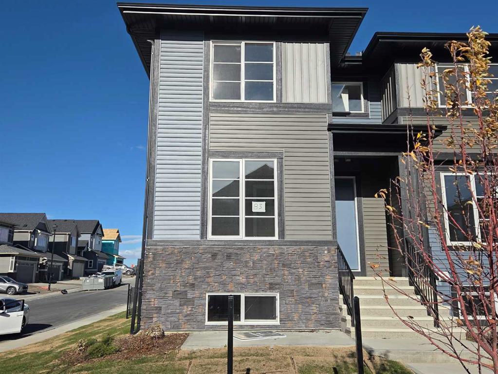 PLEASE NOTE: UNTIL JAN 18 LIST PRICE CAN BE REDUCED BY ADDITIONAL $7500 AS DEVELOPER BONUS. IMMEDIATE POSSESSION, END UNIT, SIDE ENTRY TO BASEMENT. ,DOUBLE DETACHED GARAGE, DECK, FENCED AND LANDSCAPED, NO CONDO FEES. Welcome to the "Kingston" townhome, by Award winning, Master Builder, Douglas Homes Ltd. From the front covered porch, the entry opens onto the front flexroom/den with close by 2pc powder room. 9ft ceiling and hardwood floors throughout the main floor. The aspiring chef will appreciate the well planned "island" kitchen. From the upgraded 42 inch, soft close cabinets, to the gorgeous quartz countertops, everything is within easy reach. The sparkling stainless steel fridge, the glass top, self cleaning electric range, dishwasher, and over the range microwave/hoodfan are all just an arms length from the kitchen sink in the huge island. The spacious dining area features a large picture window. The spacious greatroom with feature electric fireplace, with large picture window looking out onto the large back yard, with lots of space for the kids to play. Also a rear entry door to the deck for those summer bbq's. Upstairs includes 2 good sized secondary bedrooms, a 4pce bathroom with quartz vanity and tile floors, a convenient upstairs laundry, and a spacious primary bedroom with large upsized window and ensuite bath, with walk in shower, with glass front, tile floor and again a quartz vanity with his n her sinks. The full basement provides rough in plumbing for a future bath, one window for future bedroom, and enough space remaining for a spacious future family room if you decide your family needs room to spread. . THIS IS AN END UNIT WITH SIDE ENTRY TO THE BASEMENT.