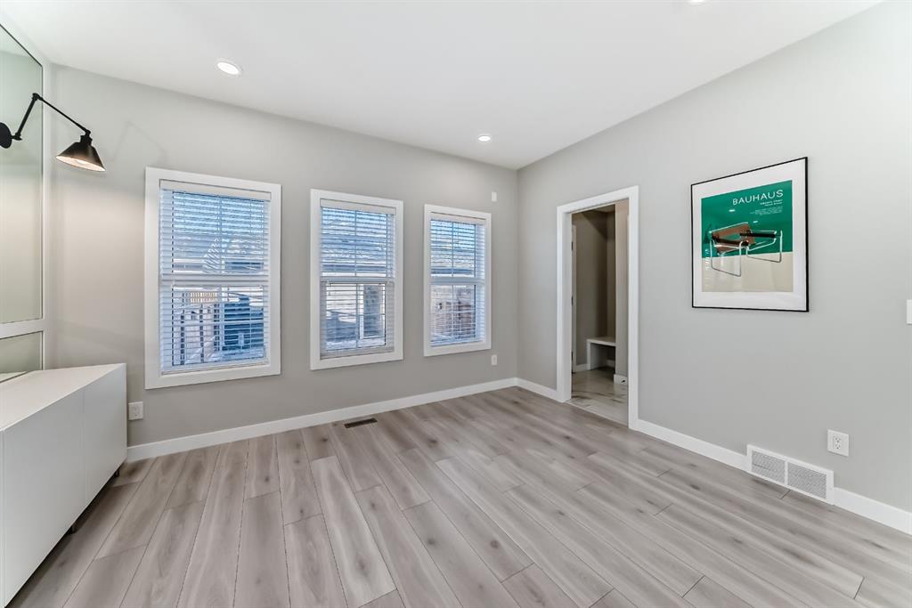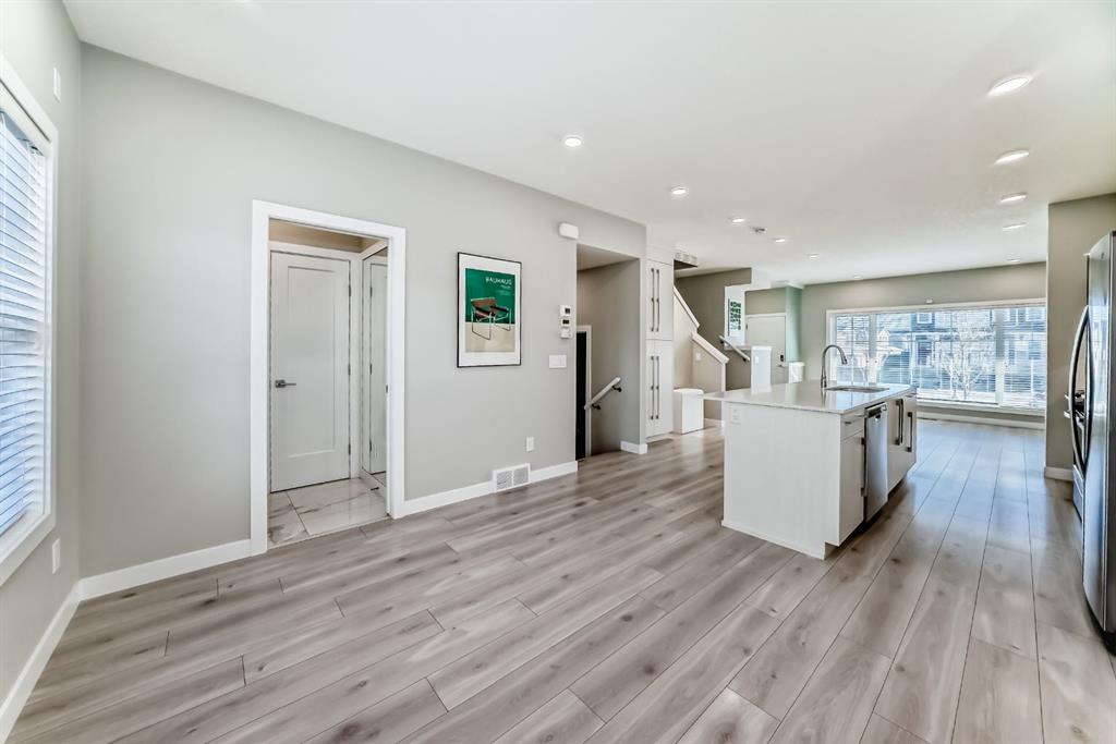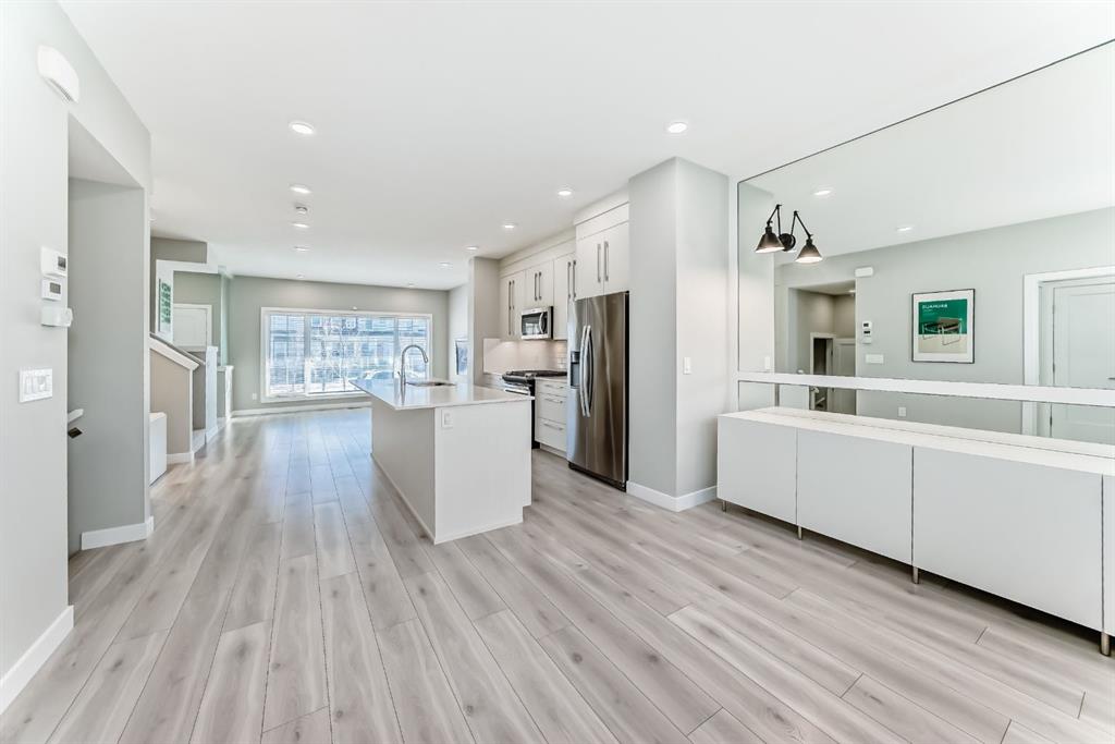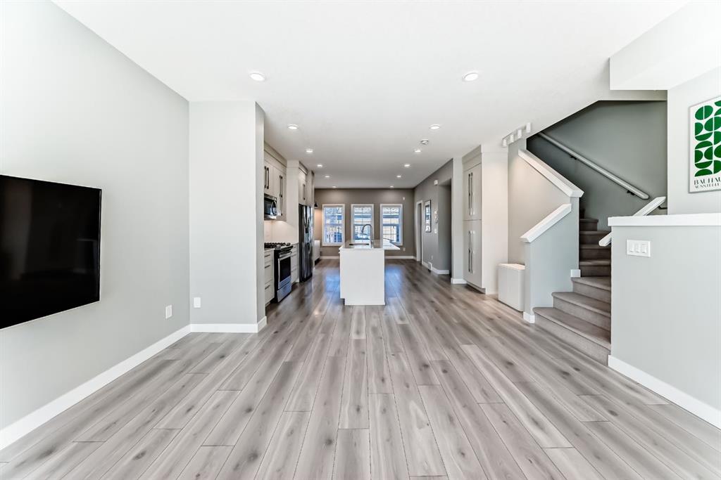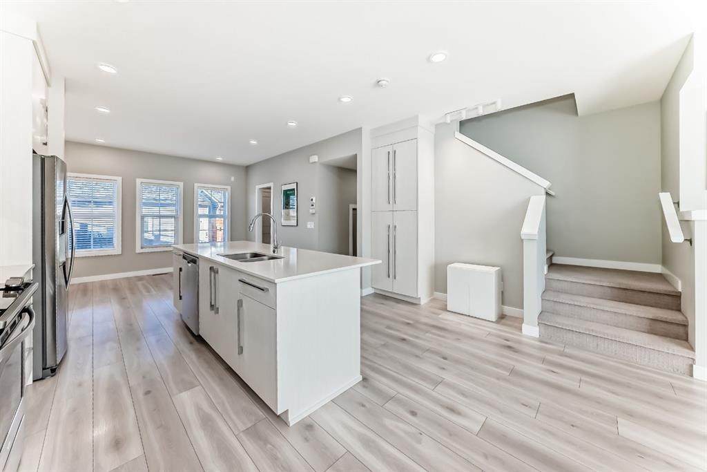 Experience comfortable and stylish living in this beautifully built fourplex by award-winning Truman Homes, with over 2,161 sq. ft. of well-planned space and no condo fees. This home offers the perfect balance of quality, function, and value for a growing family. Step inside to enjoy bright 9-foot ceilings, modern LED lighting, and durable wide plank Maestro Oak flooring that is both elegant and family-friendly. The open-concept layout makes everyday living and entertaining easy. The kitchen is designed for busy family life, featuring quartz countertops, full-height cabinetry, under-cabinet lighting, and a stainless steel appliance package with a gas range. It offers plenty of storage and workspace for cooking and gathering together.