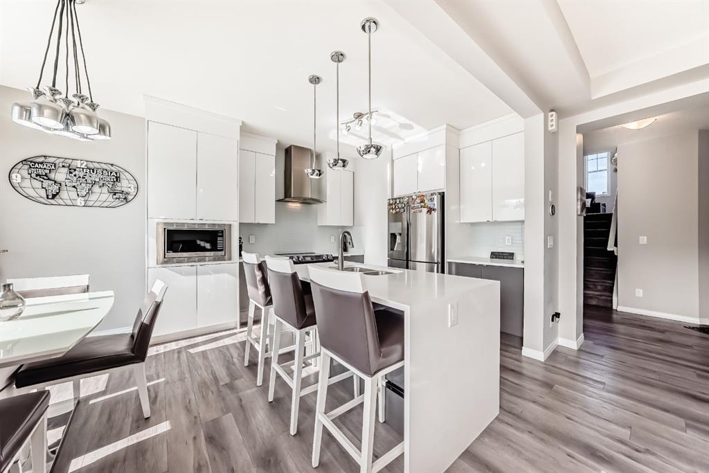 Public Remarks: Welcome to the desirable and sought after community of Carrington where this stunning and like-new, 2-storey Split level Dream home is sure to impress! Offering 3 + 1 beds, 3.5 baths, and a fully finished Legal Suite walk-up basement, this well-kept residence offers a perfect family environment! Walk up the foyer and enter the bright, open-concept main floor outfitted with beautiful wood vinyl flooring, walls painted with neutral tones that give that warm and homey vibe, and plenty of sunshine from the large windows. A fireplace, high-end light fittings around the living spaces. Central Air conditioning. The living room comes with an electric fireplace and is spacious enough to entertain a large number of guests on any occasion next to the dining area. Be inspired to cook delicious meals in the modern kitchen with gorgeous upgrades 2 tone, white and grey high gloss cabinetry adding brightness to the house accented by elegant drop pendant lighting, beautiful stainless steel kitchen appliances, and a quartz waterfall island. A garburator. Sliding doors in the dining area lead to a deck overlooking the large private fenced landscaped backyard. A 2pc powder room completes the main level. Upstairs, is a cozy great room ideal for any kind of recreational activities with the family, there's a bonus kids’ play area attached to this loft too! As well as an access to the balcony where you can set a table and some comfortable chairs to create a perfect corner to unwind during sunny afternoons. Your private space awaits in the massive primary bedroom featuring a walk-in closet and a spa-like 5 pc ensuite (with extra large soaking tub). There are 2 more good-sized bedrooms on this floor plus a convenient upper-level laundry room with counter top and cabinets. Plenty of windows on all levels provide natural light throughout. The fully finished LEGAL basement is well designed and has a separate Walk up entrance complete with a living room and a bedroom for extra income option, and a 4 pc bathroom, it comes with its laundry, washer plus dryer. 2 extra storage areas under the stairs. There's more space in the private landscaped yard with a deck for summer BBQs. So much space you can even set up a Gazebo Canopy perfect for hosting family and friends. Double attached garage that can house 2 cars and still has room for extra storage plus a full concrete driveway for extra parking. Located conveniently close to schools, transit, shopping, and all other amenities, this gem and rare find home provides all the elements for relaxing and comfortable living. Great value for this move-in-ready DREAM home in a terrific neighborhood! Call to book your appointment today! Listing realtor has interest in the property. * Refrigerator in Pictures is different. Brand new 2025 roof and some siding.