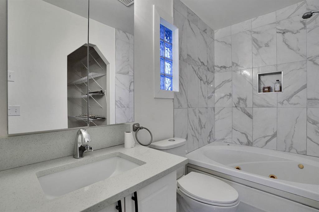 Welcome to 58 Lakeview Bay, a fully finished and stunning property nestled in one of Chestermere’s most desirable lakefront communities. This beautiful home offers approximately 1,960 sq. ft. of elegant living space, perfectly blending comfort and style. Situated on a large pie-shaped lot with ample RV/boat parking, this residence is ideal for families and entertainers alike. The main floor features an upgraded kitchen equipped with premium stainless-steel appliances, an electric stove, chimney hood fan, French door fridge with waterline, wine cooler, quartz countertops, a stylish backsplash, full-height cabinets, pantry, and an island/bar for casual dining. Additional highlights include a convenient powder room with cabinetry, a dining room, laundry area, family room, and a living room with an inviting gas fireplace—perfect for relaxing or hosting guests. Large windows and exterior doors flood the home with natural light, creating a bright and airy ambiance, further enhanced by upgraded light fixtures, pot lights, and an orange peel ceiling. Luxurious vinyl plank flooring extends from the stairs throughout the upper level. The spacious primary bedroom features an upgraded four-piece ensuite with a walk-in closet, quartz countertop vanity, large mirror with storage, beautiful tilework, and a jetted tub for a private retreat. Two additional large bedrooms with closets, a generous storage/linen closet, an upgraded three-piece bathroom, and a versatile bonus room—ideal as a fourth bedroom or home office—complete the upstairs. The developed basement offers a large living area with plush carpeting, a fourth bedroom, another three-piece bathroom, and a spacious mechanical/storage room. Outside, enjoy a double attached garage with an extended driveway, a large wood deck with a newly installed gazebo, a composite deck with a jacuzzi and glass railing, a huge RV/boat parking area, and an expansive pie lot featuring a playground, fire pit and shed. This exceptional home is within walking distance to the golf course and Chestermere Lake, and just minutes from East Hills shopping centre, grocery stores, restaurants, cafes, schools, police, and fire station. With easy access to major routes like 16 Avenue and 17 Avenue, this centrally located property offers both tranquility and convenience. Whether you’re seeking a serene retreat or a place to entertain, 58 Lakeview Bay delivers an outstanding lifestyle opportunity.