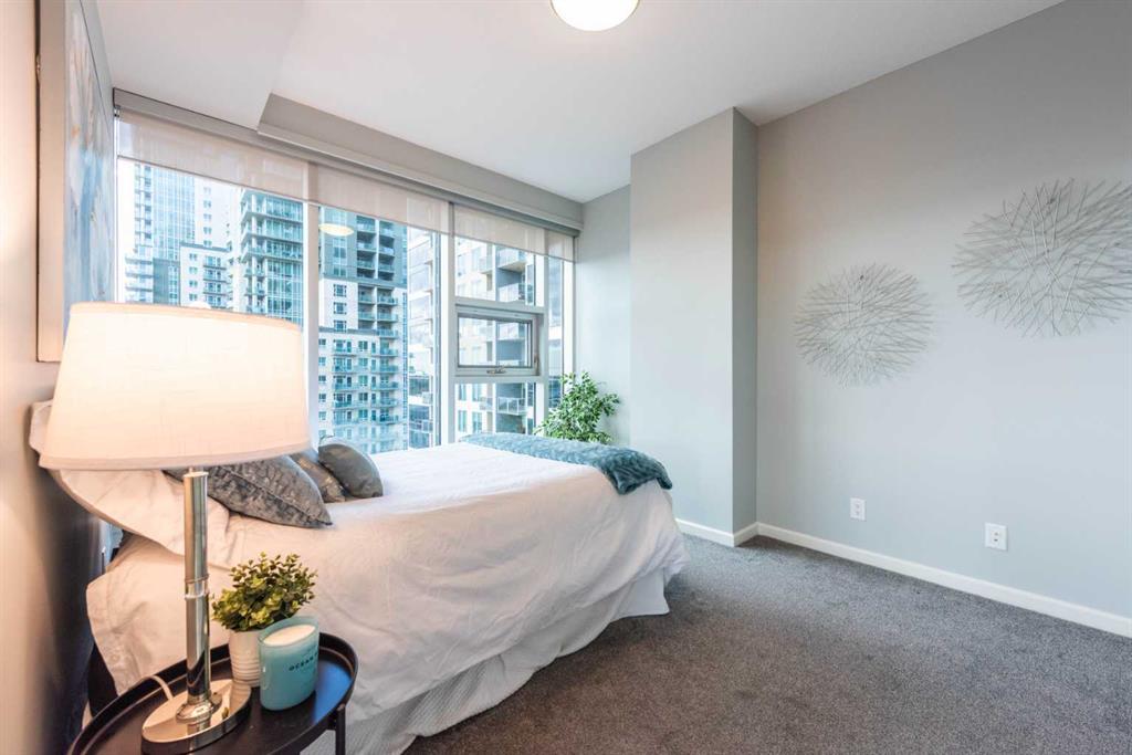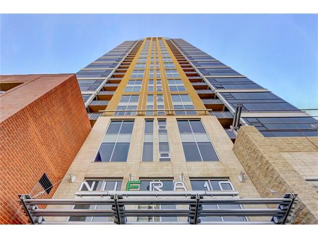 Modern & urban with new paint & new carpet, matching granite on all counter tops, Nuera offers you all the convenience your busy lifestyle demands. With on-site security/concierge, bike storage room, fitness facility with yoga studio & an owners lounge, let Nuera take you to new heights! This immaculate, SE CORNER suite offers a split bedroom floor plan, perfect for a roommate or for when guests are over, tons of natural daylight, 2 bdrms & 2 full baths, beautiful kitchen with dark mocha cabinets, stainless steel appliances, granite counters and huge centre island, east facing balcony (can't wait for the Stampede fireworks next July!), master bedroom with walk-through closets and ensuite bath, second bedroom & bath, insuite laundry and a HUGE 15' wide titled underground parking stall. Don't forget the central air conditioning, granite counters in the baths, assigned storage locker, 18+ adult building, central location 1 block to the LRT, close to downtown, entertainment venues, great restaurants, Sunterra Market, shops & boutiques - all yours to discover. Call today for your viewing!