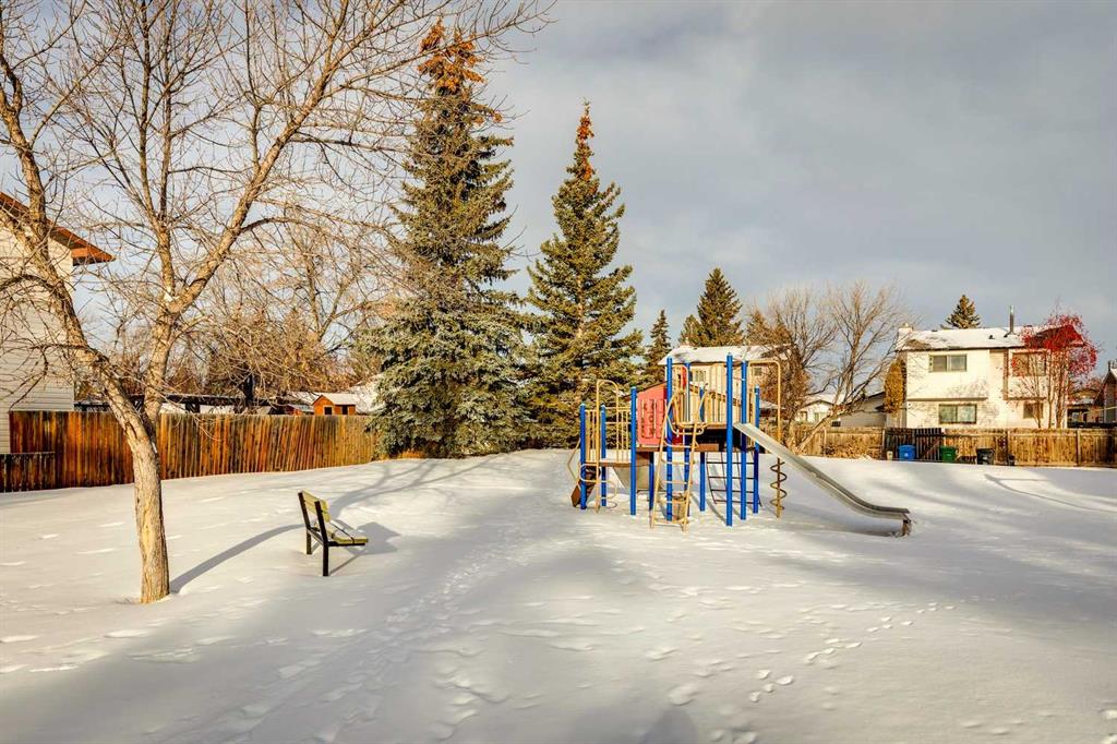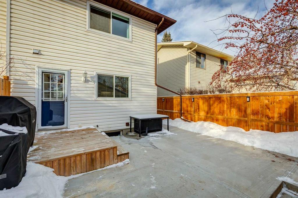 Cedarbrae - 42 Cedarwood Hill SW: Welcome to this well-maintained 1,080 sqft two-storey duplex, ideally located just two homes from a playground in the desirable community of Cedarbrae. With a total of over 1,430 sqft of developed living space, this home features 3 bedrooms, 1.5 bathrooms, a fully finished basement, and a detached double garage. The main floor includes a bright west-facing living room, dining room, bright, updated kitchen with stainless steel appliances, and a convenient 2-piece bathroom. Upstairs, you will find the primary bedroom with double closets, two additional bedrooms, and a 4-piece main bathroom. The fully developed basement includes a spacious recreation room, ample storage, and a laundry area shared with the mechanical room. Enjoy low-maintenance outdoor living with a backyard featuring a deck, turf, and concrete patio, with access to the 20’ x 22’ detached garage. The front yard features a large, west-facing patio with a gazebo, ideal for year-round enjoyment. Recent updates include new shingles on both the home and garage in 2019, and a new furnace installed in March 2025. Cedarbrae is a quiet, family-friendly community with easy access to playgrounds, schools, Fish Creek Park, and major roadways, including Anderson Road, Stoney Trail, and Macleod Trail. This turnkey home is ready for you to move in and enjoy! Contact us today for more information.