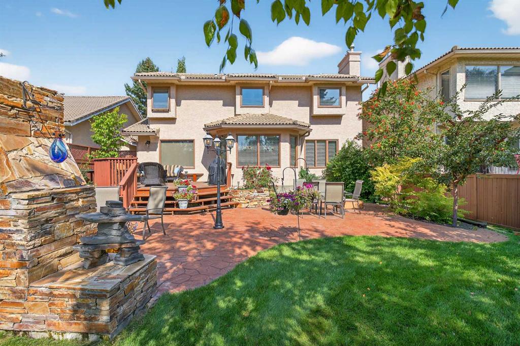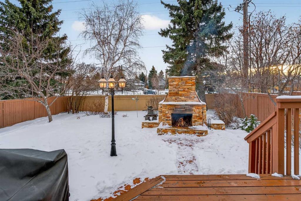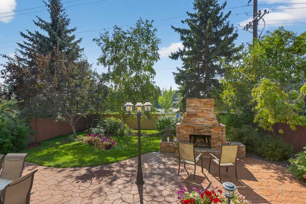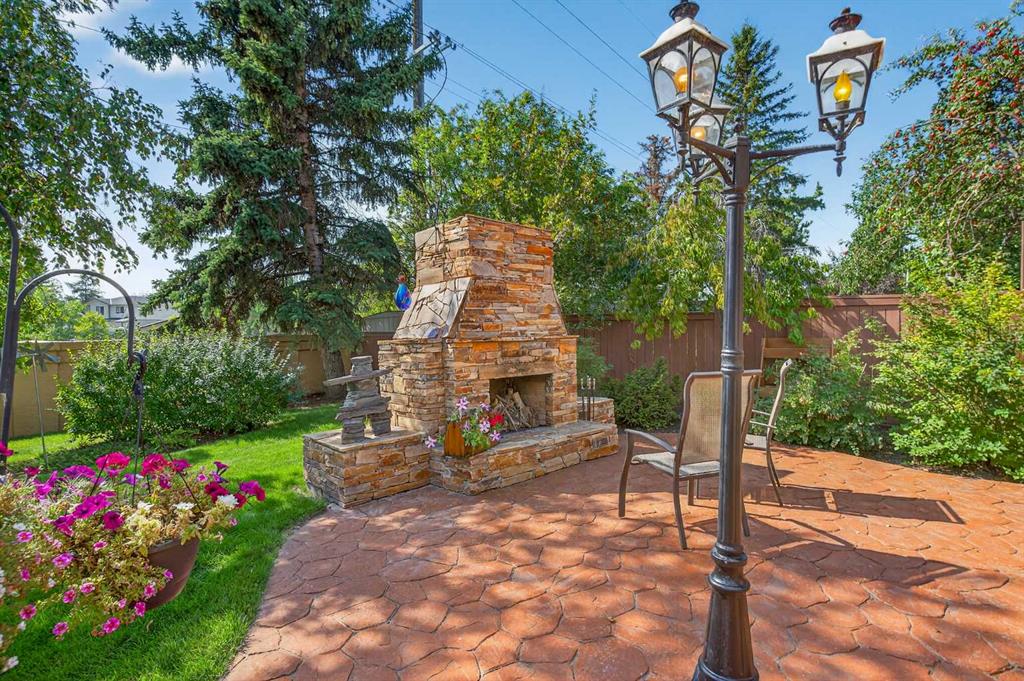 The sunny South facing backyard is a true retreat, complete with a large deck, generous green space, stamped concrete, mature shrubs & greenery & a show-stopping custom wood-burning fireplace, ideal for entertaining or quiet evenings at home with the family.