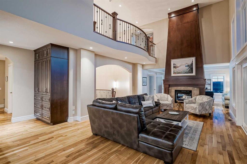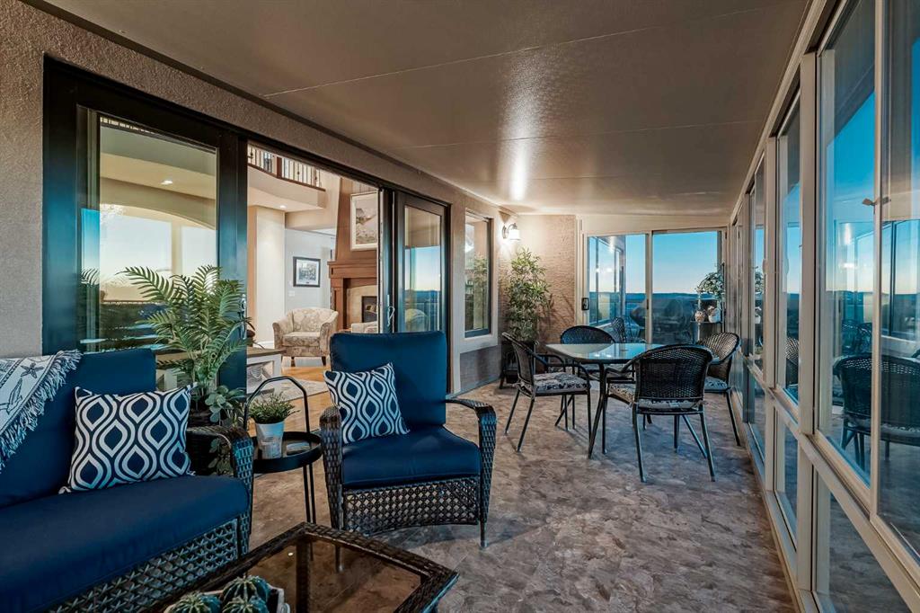 The heart of this home is centered around its world-class location and the unmatched vistas of the Bow River Valley and the majestic Rocky Mountains. The addition of a stunning sunroom in 2025 serves as a private gallery for nature, providing an incredible space to soak in Calgary’s most iconic sunsets and valley views. Inside, the grand foyer makes a lasting impression with its soaring ceilings, crystal chandelier, and elegant spiral staircase. The main floor is an entertainer’s dream, featuring massive windows that frame the mountains and a designer kitchen equipped with professional-grade Wolf, Sub-Zero, and Miele appliances. A two-story, double-sided fireplace anchors the formal living and dining areas, while a dedicated executive office with custom built-ins offers a private retreat for the modern professional.