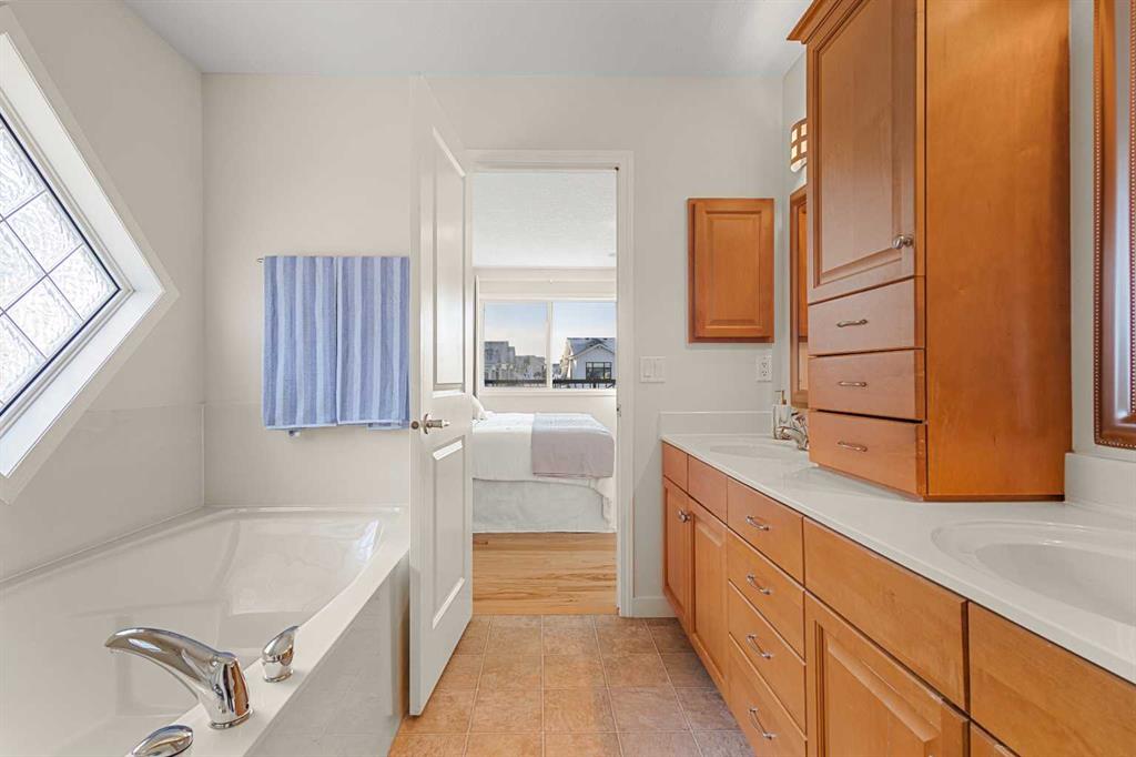 breakfast bar, central vacuum, double vanity, high ceilings, kitchen island, pantry, storage, walk-in closet(s)
