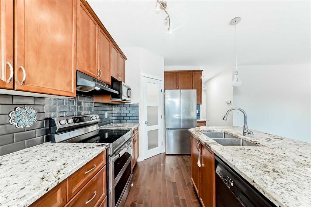This is a renovated great family home over 2400 sqft. living area with new carpet , new paint ,new Roof , new siding , Stove & refrigerator only 2 years old spotless property, just steps away from a park and on a quite street. This well kept home features hardwood floors, 9 ft ceiling, Stainless steel appliances, and warm colors throughout. Also on the main floor you will find a good sized den , living area and Kitchen having Iceland with granite countertop and lot of cabinets & storage space. The upper floor features a cozy bonus room which is wired for surround sound, laundry room, a master bedroom with walk-in-closet, and a 5 piece ensuite that includes his/hers sinks! There are also two good size bedrooms on the upper level that completes this home. Fully finished basement Basement having lager size bedroom with big window & a kitchen. On hot summer days you can stay cool with the A/C that is staying with the house .Basement developed with permits but not legalized suit. Very easy to make side entrance jut 2 steps cut concrete for side entrance and convert into suite with subject to city bylaws & approval.