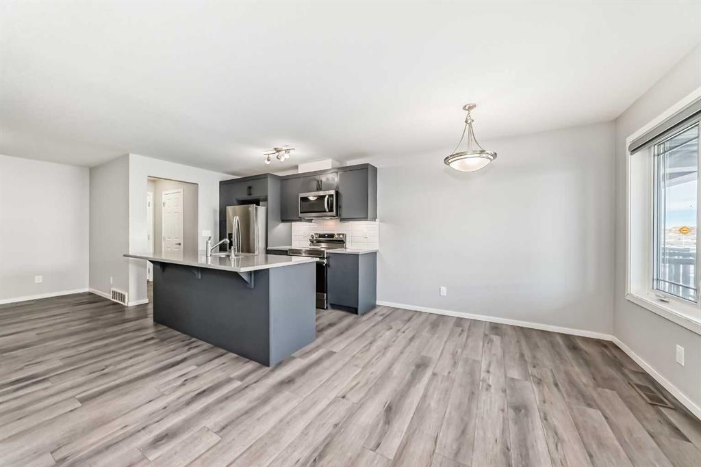 This stunning home offers over 1,500 sq. ft. of living space and is move-in ready with NO condo fees! It's located in a prime area with easy access to shopping, dining, and major highways like the Ring Road. Whether you're headed to the west or east side of Calgary, you'll be just 20 to 30 minutes away. Upon entering, you'll be greeted by a spacious foyer that leads to a generous dining area, perfect for hosting large gatherings. The open-concept design creates a warm and inviting atmosphere throughout the main floor. The kitchen is a true standout, featuring modern cabinets, upgraded stainless steel appliances including a gas stove, quartz countertops, and luxury vinyl plank flooring for a sleek and polished look. The cozy living room is an ideal space for family time. Upstairs, you'll find two bright bedrooms, a 3-piece bathroom, and a large master bedroom complete with a 4-piece en suite. The upper level also includes the in suite laundry for added convenience. The basement is ready for your personal touch, offering the potential for additional living space. An attached double-car garage adds extra value, and enhances the home’s charm. Don’t miss out on this incredible opportunity. Schedule your showing today before it’s gone!