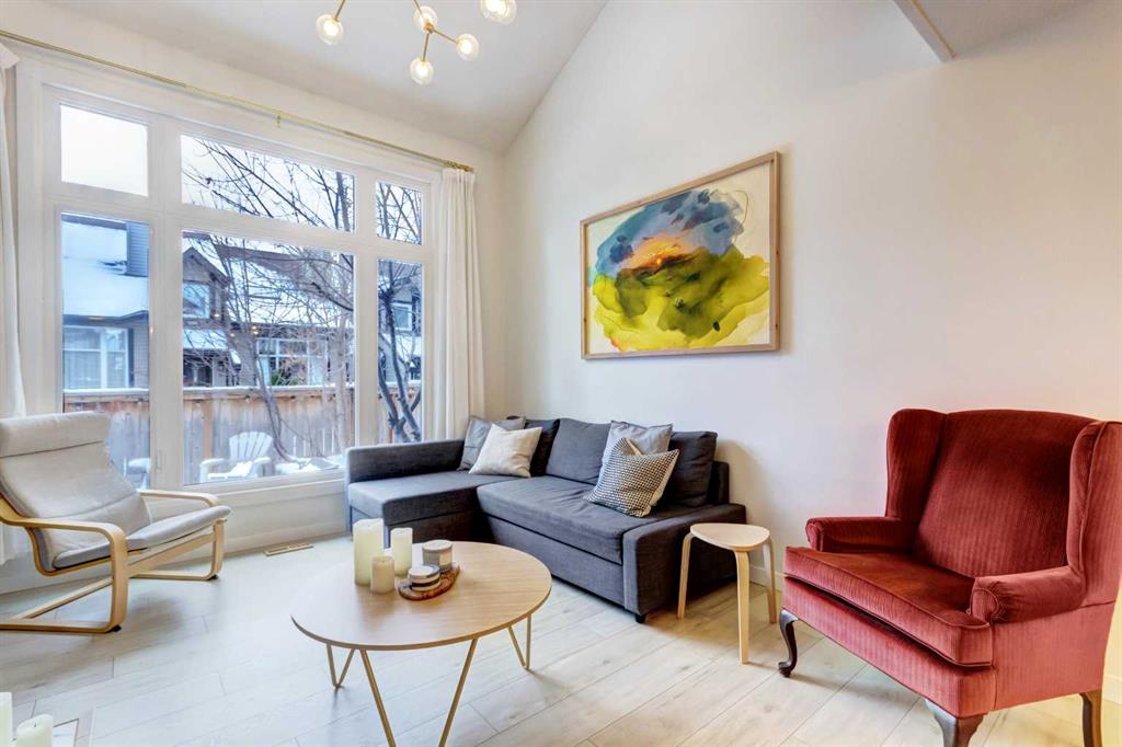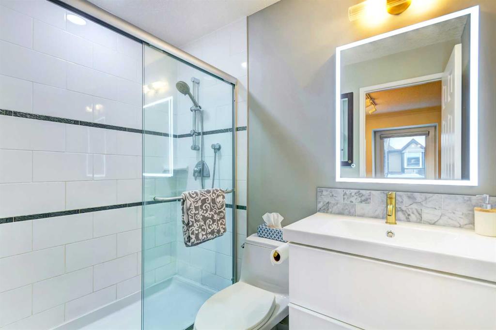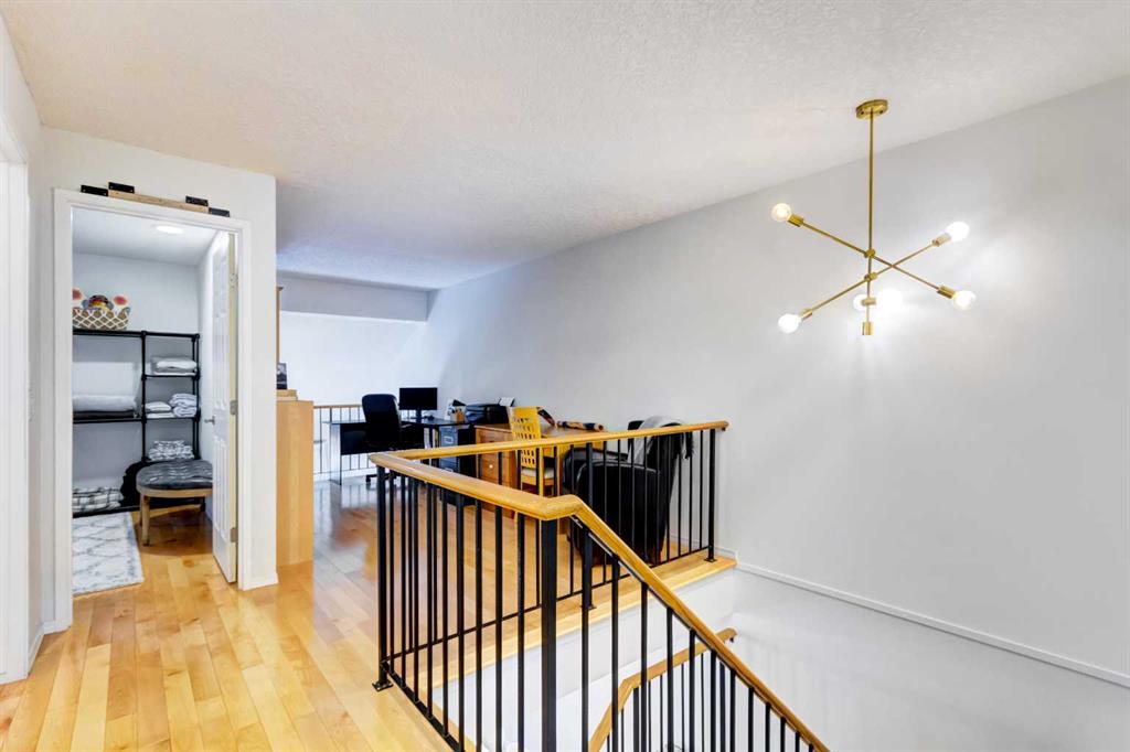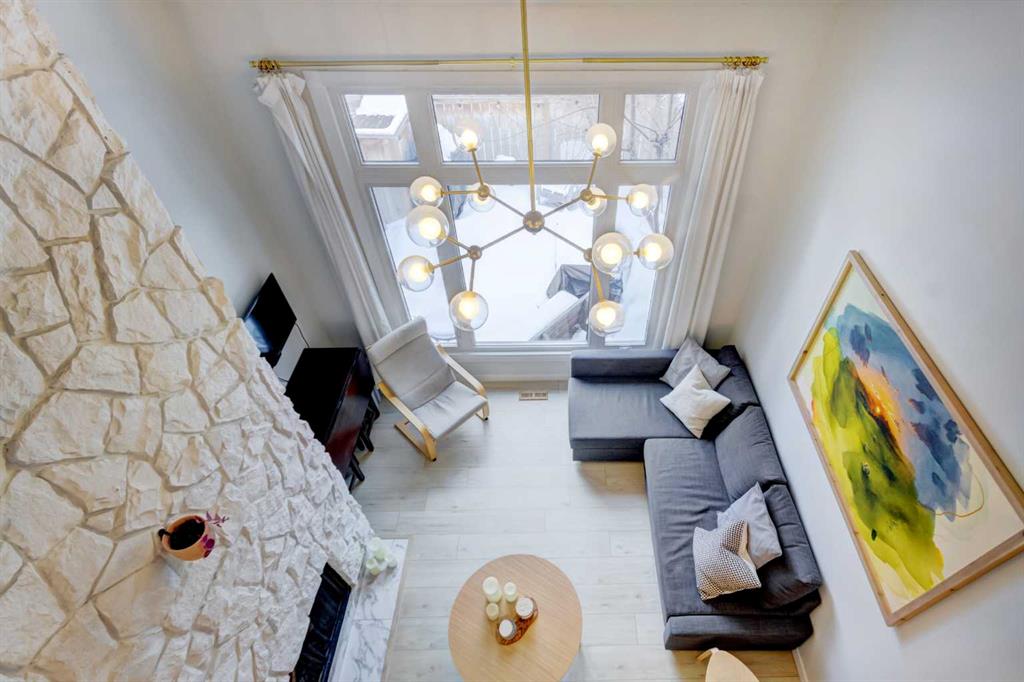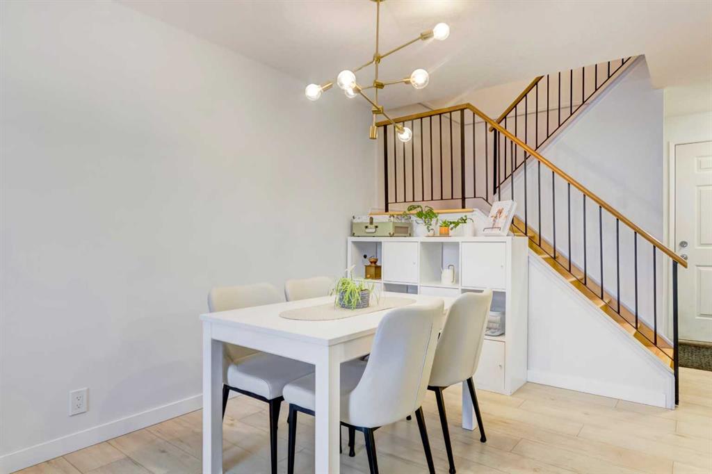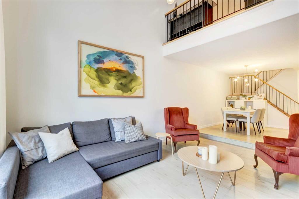 Welcome to Tiffany Lane — a highly sought-after and rarely available address. This exquisitely renovated townhome offers 1,337.7 sq. ft. of beautifully designed living space, featuring two spacious bedrooms, 2.5 bathrooms, and refined finishes throughout. Ideal for first-time buyers, downsizers, or investors alike. Step into a bright and inviting main floor, where neutral tones and thoughtful design create a sense of effortless elegance. The open-concept living, dining, and kitchen area is filled with natural light and enhanced by vaulted ceilings and luxury vinyl flooring. The stunning kitchen is a true showpiece, showcasing modern shaker cabinetry with gold brass hardware, high-quality stainless steel appliances, white quartz countertops, ample storage, and a sleek marble subway tile backsplash—perfect for both everyday living and entertaining. Adjacent to the kitchen is a generous dining area accented by a beautiful gold brass chandelier, flowing seamlessly into a cozy living space. Here, a large south-facing window and a charming stone-faced, wood-burning fireplace create warmth and ambiance. From the living room, enjoy views of the private front patio—an ideal spot for BBQs, patio seating, and soaking up the sunshine. The main level is completed by a convenient 2-piece bath for guests. Upstairs, a bright and airy loft/bonus space offers endless possibilities, whether as a home office, additional lounge area, games space, or home gym. This level also features a generously sized second bedroom and a beautifully appointed main bathroom with a clawfoot soaker tub, shower, and heated penny tile floors. The primary bedroom retreat impresses with built-in closets and a luxurious 3-piece ensuite, complete with designer fixtures, premium finishes, a large glass shower, and in-floor heating. The partially finished basement provides excellent storage and the opportunity to add your own creative touches. Located in the desirable community of Woodbine, this home offers access to Fish Creek Provincial Park, scenic walking paths, abundant green spaces, everyday amenities, and a vibrant community atmosphere. Local shops and a beloved bakery are just a few of the added perks that make this neighborhood so special.