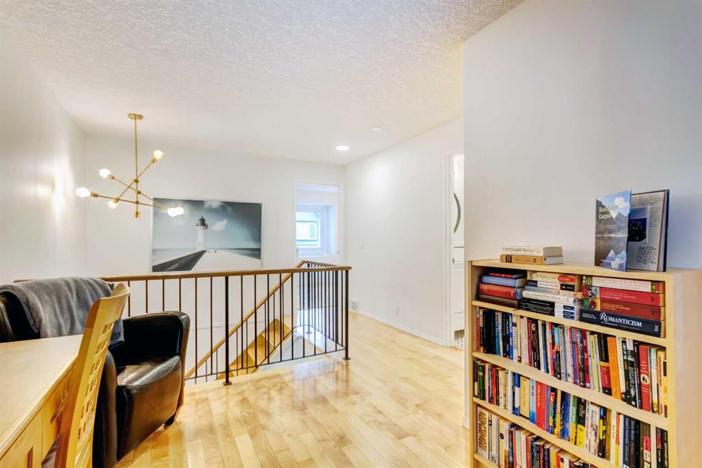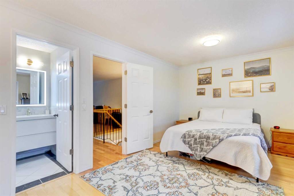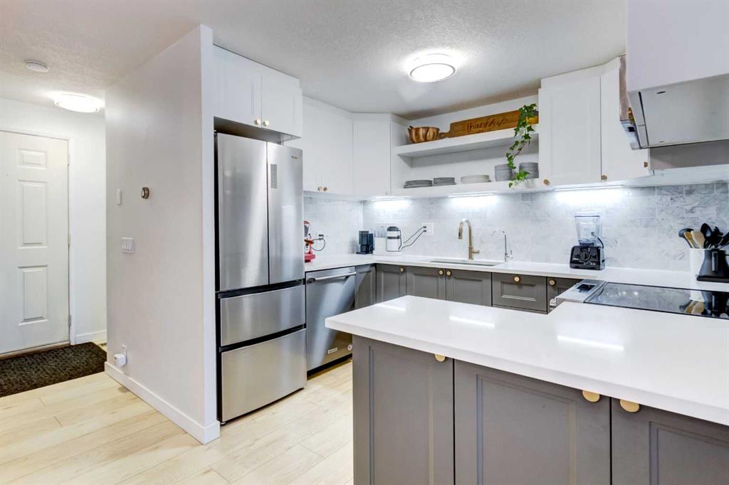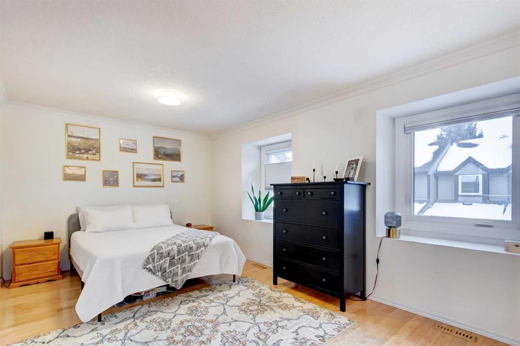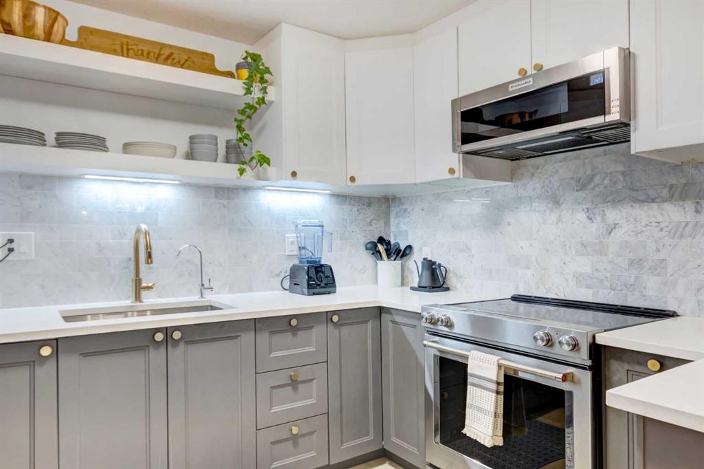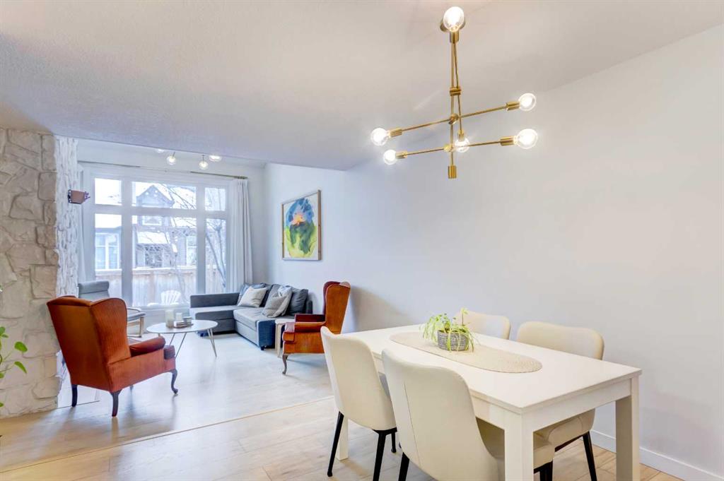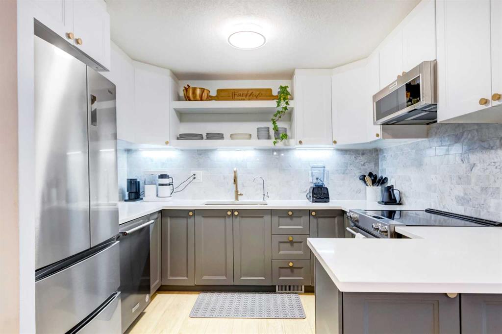 Welcome to Tiffany Lane — a highly sought-after and rarely available address. This exquisitely renovated townhome offers 1,337.7 sq. ft. of beautifully designed living space, featuring two spacious bedrooms, 2.5 bathrooms, and refined finishes throughout. Ideal for first-time buyers, downsizers, or investors alike. Step into a bright and inviting main floor, where neutral tones and thoughtful design create a sense of effortless elegance. The open-concept living, dining, and kitchen area is filled with natural light and enhanced by vaulted ceilings and luxury vinyl flooring. The stunning kitchen is a true showpiece, showcasing modern shaker cabinetry with gold brass hardware, high-quality stainless steel appliances, white quartz countertops, ample storage, and a sleek marble subway tile backsplash—perfect for both everyday living and entertaining. Adjacent to the kitchen is a generous dining area accented by a beautiful gold brass chandelier, flowing seamlessly into a cozy living space. Here, a large south-facing window and a charming stone-faced, wood-burning fireplace create warmth and ambiance. From the living room, enjoy views of the private front patio—an ideal spot for BBQs, patio seating, and soaking up the sunshine. The main level is completed by a convenient 2-piece bath for guests. Upstairs, a bright and airy loft/bonus space offers endless possibilities, whether as a home office, additional lounge area, games space, or home gym. This level also features a generously sized second bedroom and a beautifully appointed main bathroom with a clawfoot soaker tub, shower, and heated penny tile floors. The primary bedroom retreat impresses with built-in closets and a luxurious 3-piece ensuite, complete with designer fixtures, premium finishes, a large glass shower, and in-floor heating. The partially finished basement provides excellent storage and the opportunity to add your own creative touches. Located in the desirable community of Woodbine, this home offers access to Fish Creek Provincial Park, scenic walking paths, abundant green spaces, everyday amenities, and a vibrant community atmosphere. Local shops and a beloved bakery are just a few of the added perks that make this neighborhood so special.
